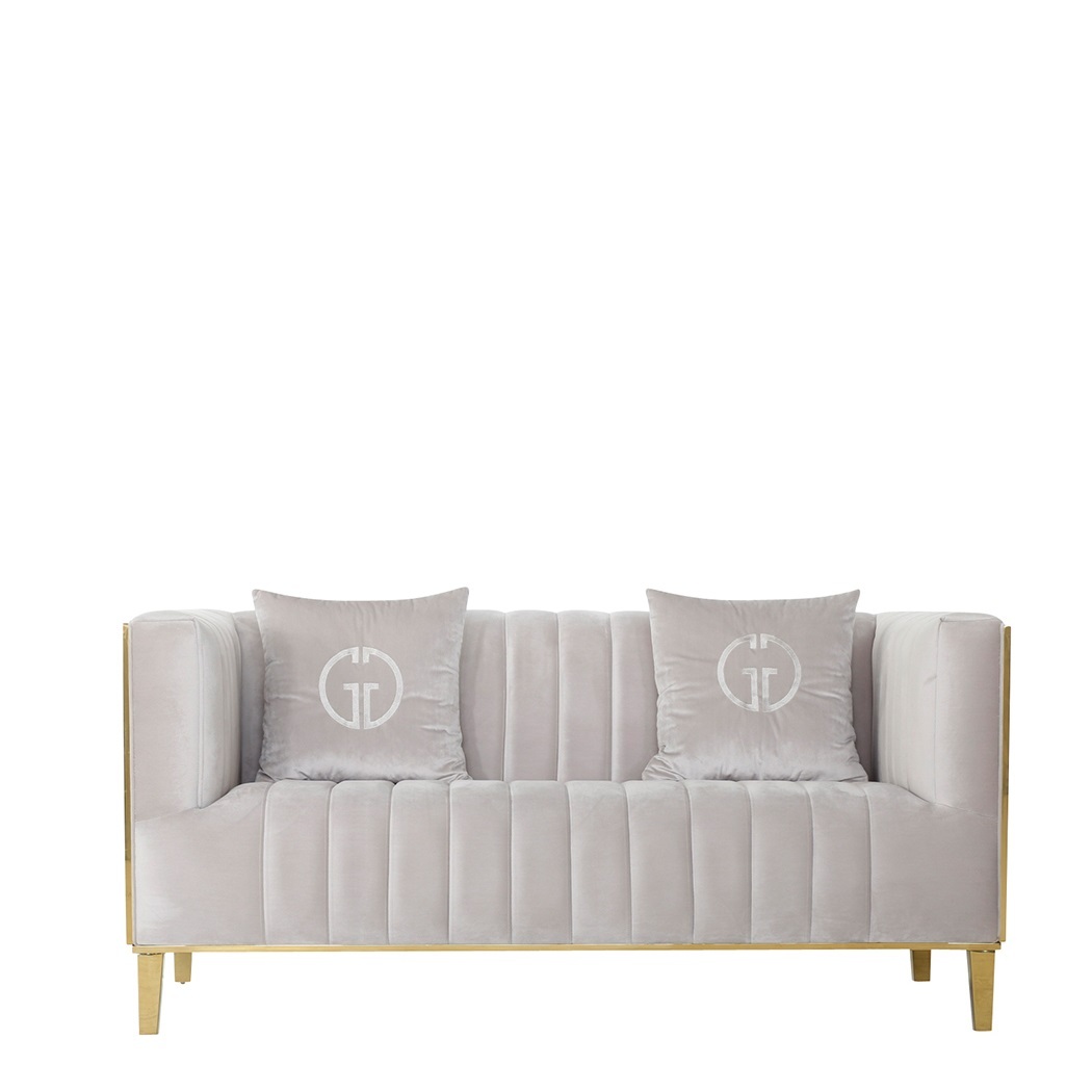 Двухместный велюровый диван из серии Basel – элегантность простых форм в тандеме с практичностью велюра и надежностью каркаса из металла. Модель, которая с легкостью найдет для себя место в современной гостиной, ресторане люкс-сегмента или кабинете руководителя. Этот стильный диван на металлическом каркасе обладает ярко выраженной индивидуальностью. Он никогда не будет играть второстепенные роли в интерьере, скорее наоборот – ему суждено притягивать взгляд и восхищать своим элегантным дизайном. Предлагаем купить двухместный серый диван в сочетании с креслами из этой же коллекции. Габариты сиденья: ширина 126см, глубина 61см, высота от пола 47см. В комплект входят 2 декоративные подушки 47*47см с логотипом GD (GARDA DECOR). Сочетается с креслами 102AN-KRES-8681-SER.