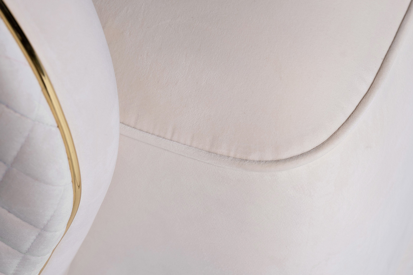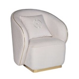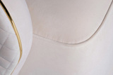 Мебель светлых оттенков - современный тренд. В данном кресле сочетается мягкий велюр нежного оттенка слоновой кости, золотая отделка по контуру, золотое же основание из нержавеющей стали и простроченная спинка.