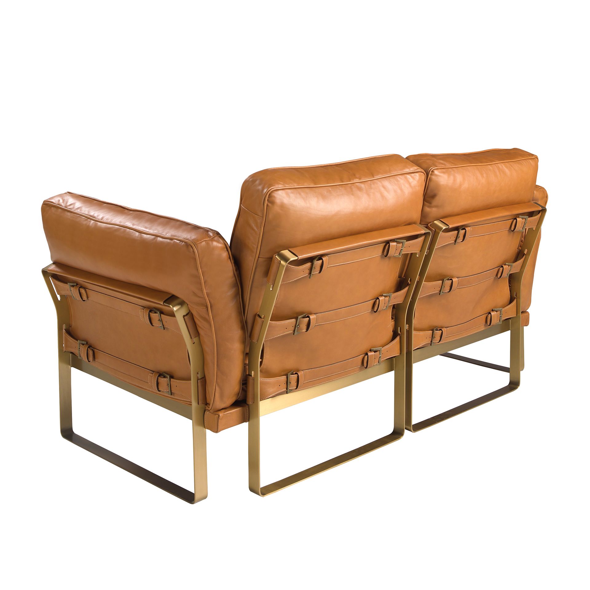 2-местный диван с современным дизайном, обитый воловьей кожей цвета верблюда. Благодаря своему стилю и золотистым ножкам из нержавеющей стали этот диван привнесет нотку авангарда и элегантности, которую вы ищете в своем доме.