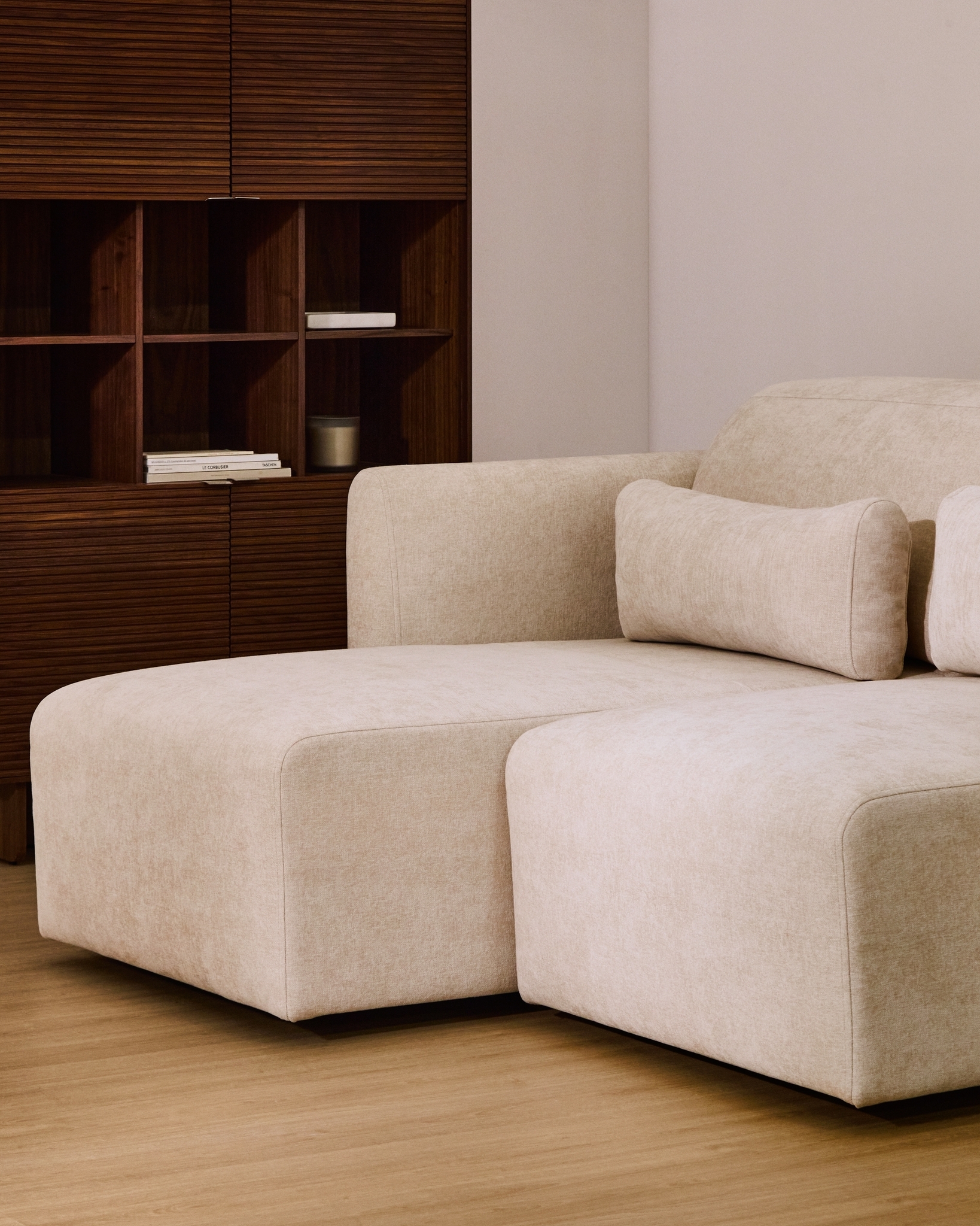 2-местный диван Lares с реклайнером и откидным подголовником из бежевого шенилла, 180 см