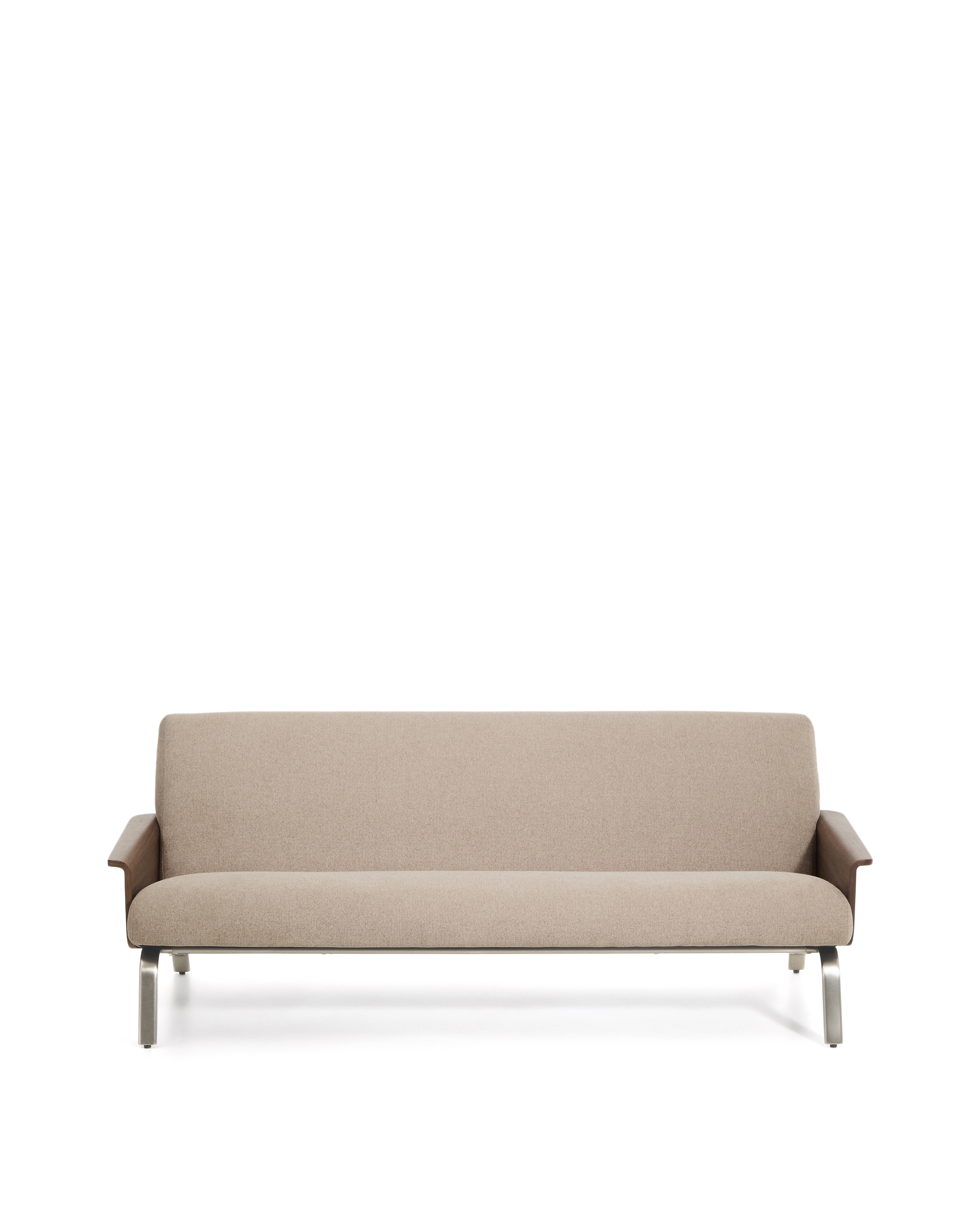 3-местный диван Amsen светло-коричневый с подлокотниками из шпона ореха