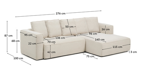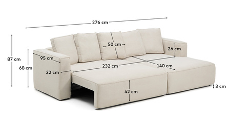 3-местный диван-кровать Marela бежевый шенилл с кушеткой справа 276 см