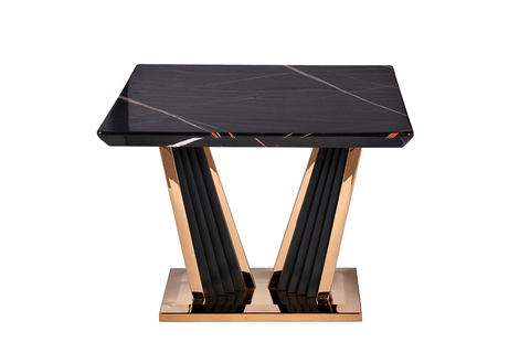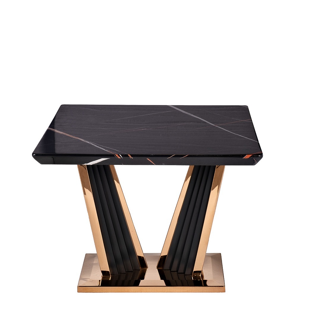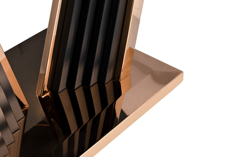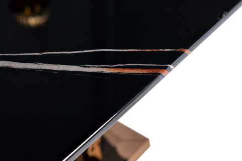 Кофейный стол, задача которого украшать, вдохновлять и радовать глаз. Не ждите от него универсальности и простоты – это не про данную модель. Этот дизайнерский стол воплощает в себе высокий стиль и роскошную элегантность. Аристократичный черный цвет столешницы и блеск металла красноречиво подчеркивают достоинство этой мебели. Столик эффектно будет смотреться в гостиной, оформленной в стиле ар-деко или неоклассика. Предлагаем купить журнальный кофейный стол премиального качества для декора жилых и статусных бизнес-интерьеров. Столешница - МДФ с полимерным покрытием под мрамор. Толщина столешницы - 36мм.