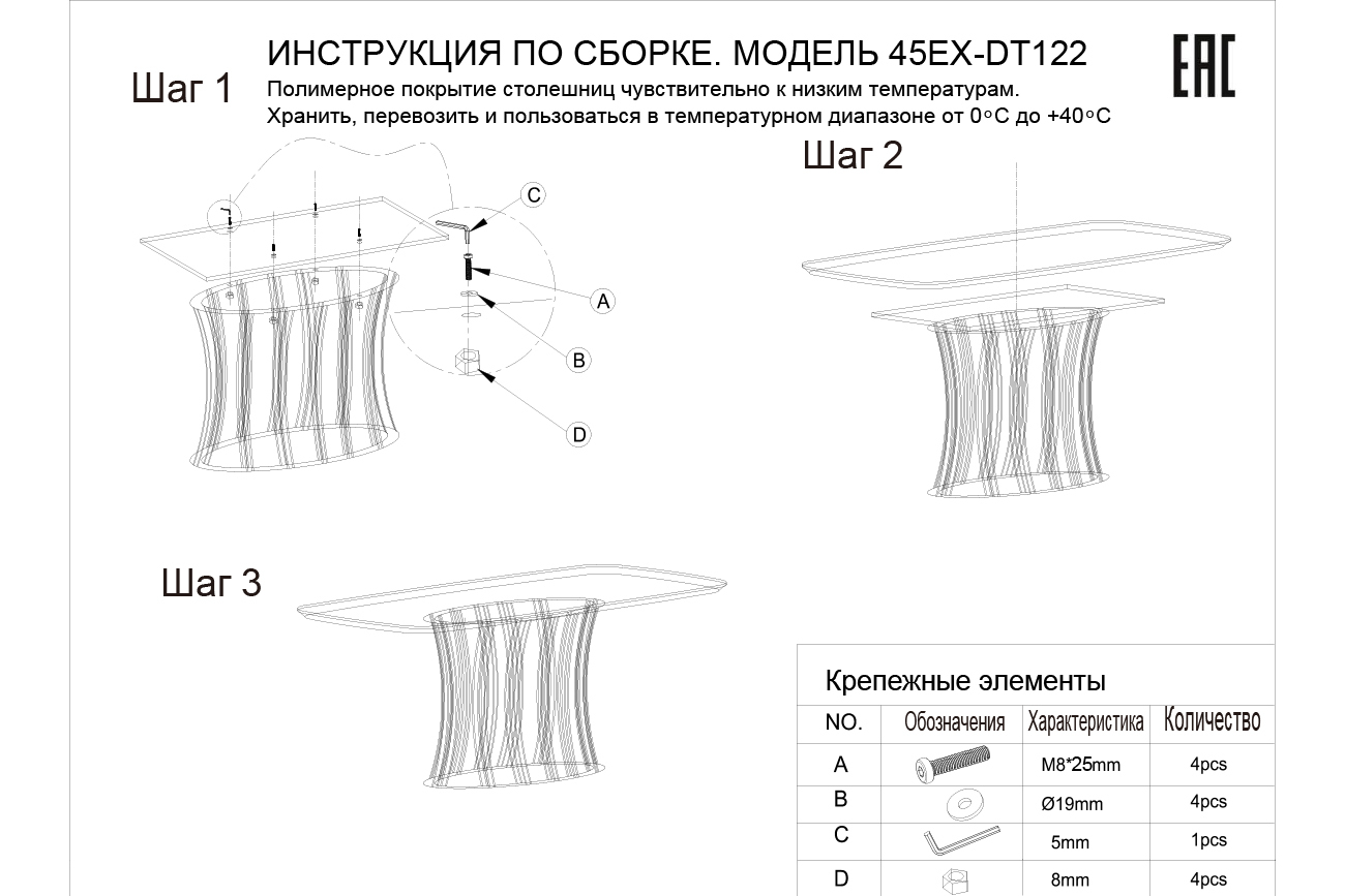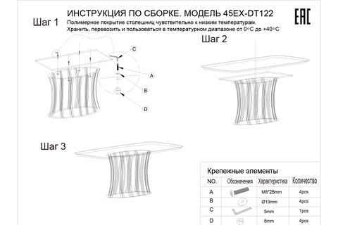 Материал: Столешница - МДФ+полимерное покрытие, основание - нержавеющая сталь