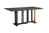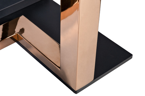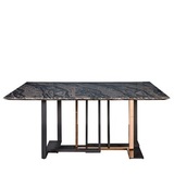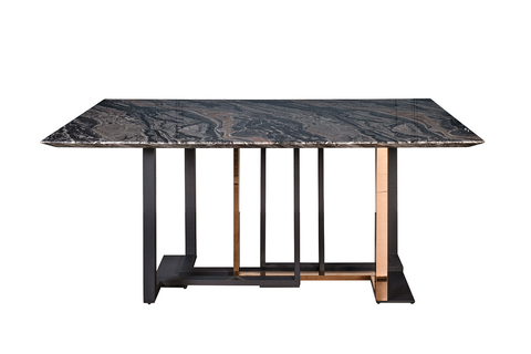 Обеденный стол Марсель - прекрасное приобретение в стиле ар-деко для вашей столовой или гостиной. Сервированный хрусталем и фарфором, отражающий блеск свечей или красоту живых цветов он является воплощением Art de vivre - искусства жить, как говорят французы. Роскошный мраморный рисунок полированной столешницы в сочетании со стальными ножками оригинальной формы в черном и золотом цвете располагают как к изысканной трапезе, так и к утонченной беседе. Столешница - МДФ с полимерным покрытием под мрамор. Толщина столешницы - 36мм.
