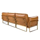 Современный 5-местный диван-шезлонг с правой стороны, обитый коровьей кожей верблюжьего цвета. Благодаря своему стилю и ножкам из нержавеющей стали золотистого цвета этот диван привнесет в ваш дом авангардный и элегантный штрих, который вы ищете.