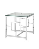 Стол Stool Group журнальный 55*55 БРУКЛИН серебро, каркас нержавеющая сталь, столешница закаленное стекло