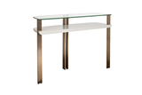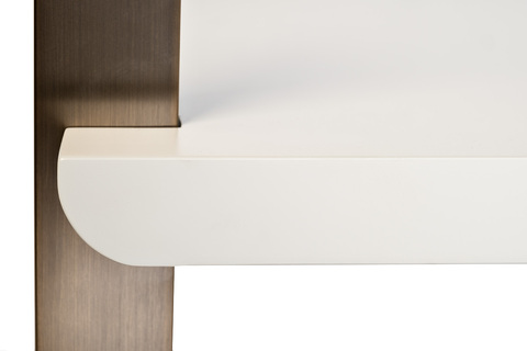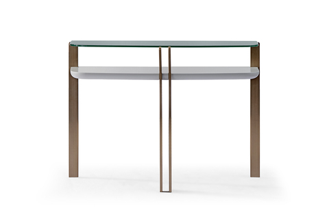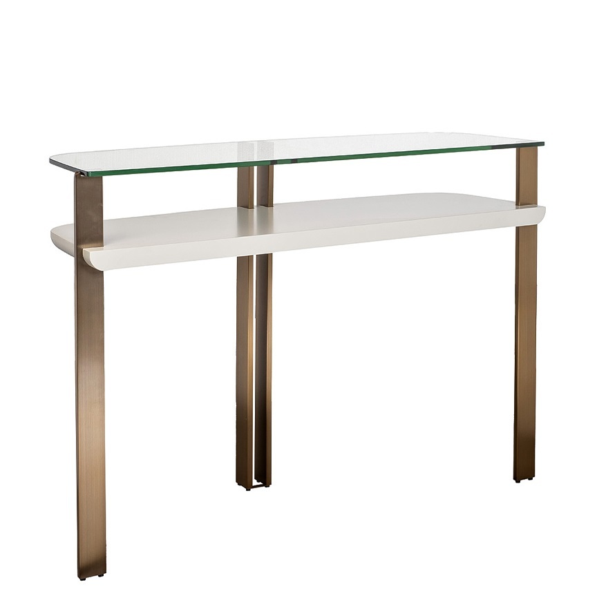 Стильная консоль из коллекции Bel Air от бельгийского дизайнера Тома Де Вульфа пленяет плавными и изысканными очертаниями. В коллекции нет жестких углов, все линии скруглены, материалы и компоненты выбраны так, чтобы придать каждому предмету мебели воздушность. Шелковистый блеск зашлифованной стали под бронзу, матовый лак цвета экрю, прозрачное стекло дают ощущение легкости и гармонии. В нашем ассортименте вы можете подобрать комод арт. 58DB-CH19263, стеллаж арт. 58DB-SH19263, обеденные и журнальные столы арт. 58DB-DT19263, арт. 58DB-CT19263A, арт. 58DB-ET19263, и стул арт. 58DB-DC14802BA для столовой или гостиной из коллекции Bel Air. Эта мебель вне моды и времени; даже по прошествии нескольких лет она будет выглядеть роскошно и современно.