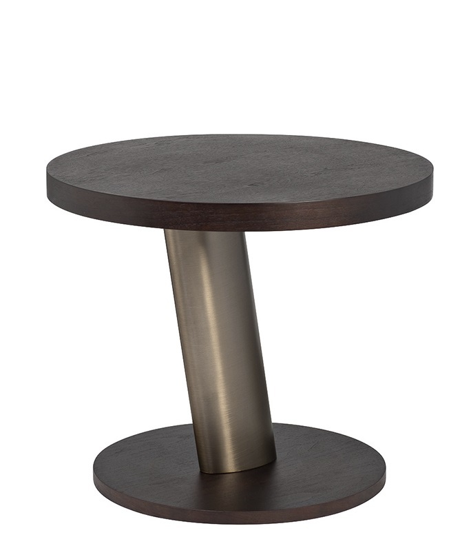 Журнальный столик KONG — выразительное продолжение дизайнерской коллекции бельгийского дизайнера Тома Де Вульфа, в которой каждая деталь продумана до совершенства. Минималистичный журнальный стол из шпона ореха — воплощение сдержанной роскоши. Его монолитная латунная ножка с матовой шлифованной поверхностью придаёт конструкции скульптурную выразительность и устойчивость. Шпонированная круглая столешница из темного ореха контрастирует с металлическим основанием, создавая баланс тепла и строгости. Эта дизайнерская мебель для гостиной безупречно дополнит интерьер с акцентом на стиль контемпорариили или нео-арт-деко. В нашем ассортименте вы можете подобрать так же другие журнальные столы этой серии Kong, но другого размера: арт. 58DB-17191, 58DB-CT17191