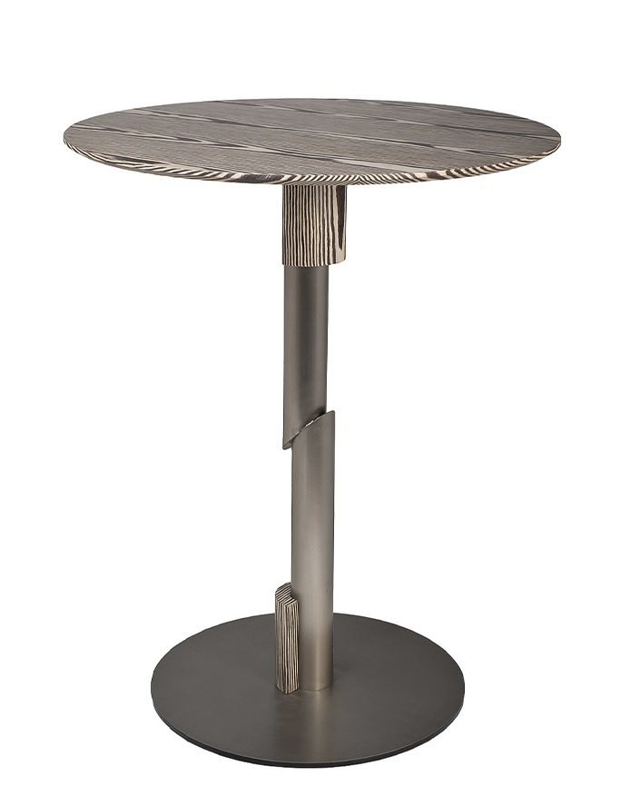 Высокий барный стол из коллекции Zebrano — вертикальный акцент, создающий динамику и функциональность в современном пространстве. Его круглая столешница, отделанная уникальным шпоном с выразительным узором, привлекает внимание своей текстурой и глубиной. Центральная опора, выполненная в креативном дизайнерском подходе, придает столу не только прочность, но и скульптурную выразительность. В актуальных интерьерных концепциях, где ценятся многофункциональность и индивидуальность, этот стол становится идеальным решением для организации зоны завтрака, неформальных встреч или как эффектный элемент в студии или гостиной открытой планировки. Шпон столешницы приносит природное тепло, а металлическая основа подчеркивает современный характер, делая его универсальным для различных стилей – от лофта до минимализма. В нашем ассортименте вы можете подобрать журнальные столы арт. 58DB-23180, арт. 58DB-23188 и стеллаж арт. 58DB-16000 в стиле Zebrano.