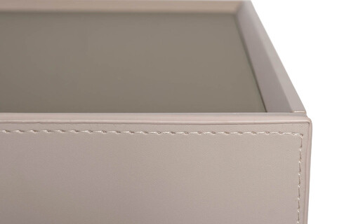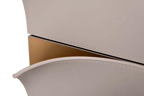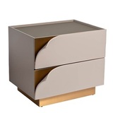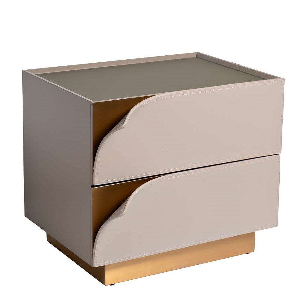 Прикроватная тумбочка для спальни с лаконичным дизайном составит стильную компанию кровати и шкафу, сделает обстановку в комнате более уютной. Компактная, вместительная за счет двух выдвижных ящиков. Отделка тумбочки из экокожи выглядит дорого и эффектно, подчеркивает статусность мебели. Особенного изящества и легкости ей придает основание из металла с «золотым» блеском. Прикроватная тумбочка с отделкой из искусственной кожи и другая эксклюзивная мебель доступны к заказу на нашем сайте.