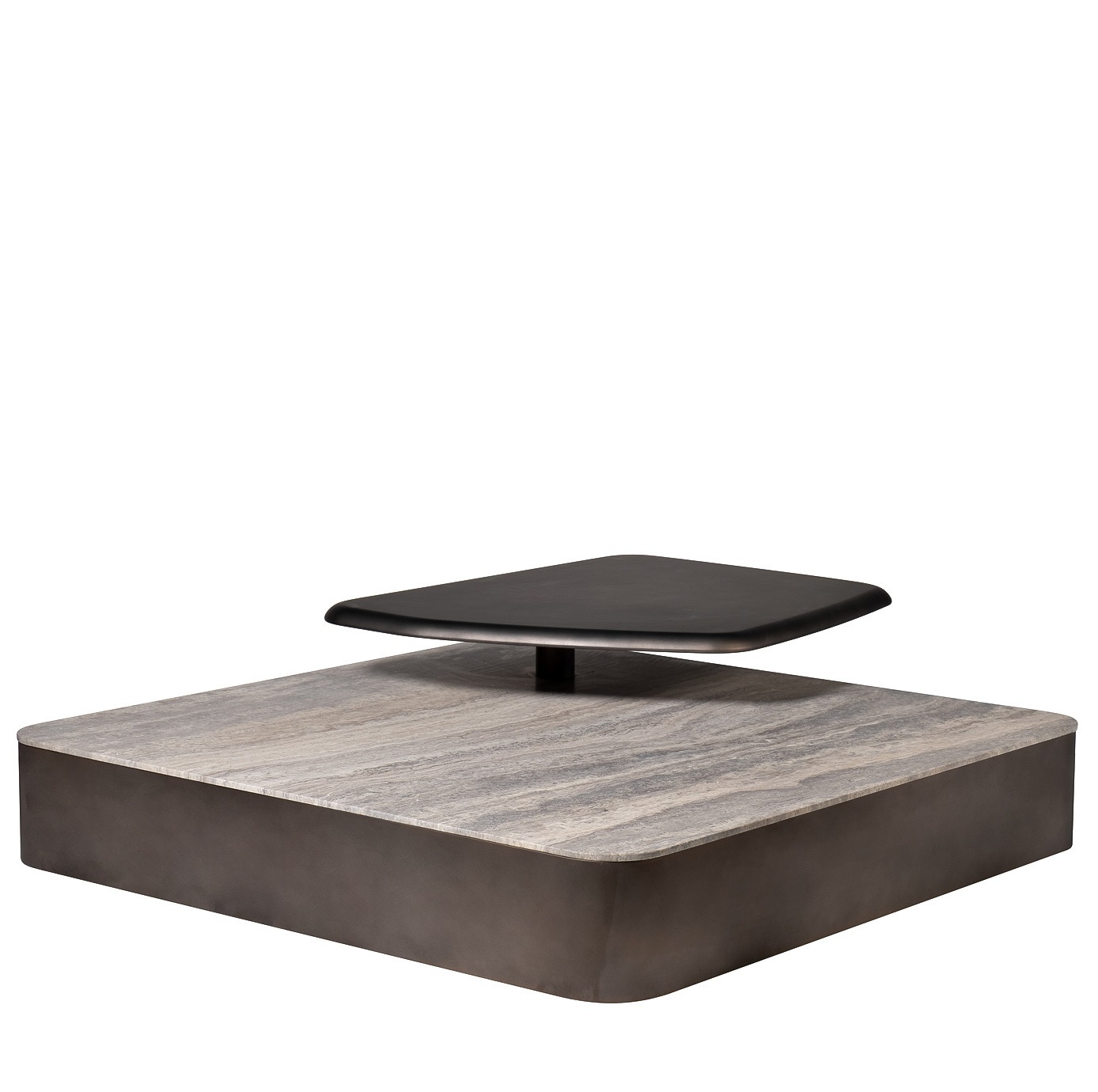 Этот квадратный мраморный журнальный стол с полкой — не просто функциональный элемент, а выверенная архитектурная форма, способная стать центром притяжения любого пространства. Его массивная столешница из натурального мрамора с уникальным узором, напоминающим застывшие реки, придает предмету монументальность и природную глубину. Основание, выполненное из шлифованного металла, создает строгий контраст, подчеркивая благородство камня. Над основной плоскостью расположена дополнительная полка из металла, которую можно повернуть в разные стороны. Её асимметричная форма и темный оттенок добавляют композиции динамики и многослойности, предлагая нетривиальное решение для размещения декора или книг. Этот предмет идеально впишется в современные интерьеры, где ценятся смелые сочетания материалов, скульптурные формы и функциональная эстетика. Стол является воплощением дизайна, который гармонично объединяет природную мощь камня и строгость металла, создавая пространство, наполненное характером и утонченным стилем.