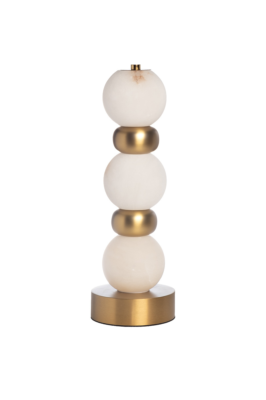 Оригинальная настольная лампа органично впишется в интерьер ар-деко и неоклассика, добавит обстановке выраженной индивидуальности. Модель отличается не только высочайшим качеством исполнения, но и необычным дизайном. Эффектное сочетание позолоченного металла и матового алебастра делает этот настольный светильник превосходным украшением интерьера. Композиция из алебастровых шаров напоминает необычный арт-объект и дарят мягкий ненавязчивый свет. Эксклюзивная настольная лампа для гостиной или спальни станет украшением пространства и отличным подарком для любого ценителя прекрасного.