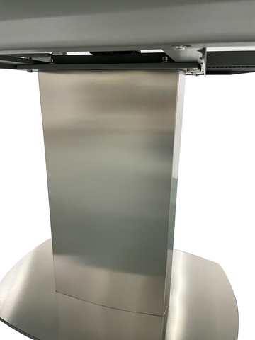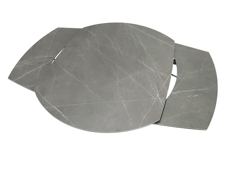 Особенность этого стола - довольно большая площадь столешницы, напоминающей серый матовый камень. Столешница выполнена из 3мм керамики на 8мм закалённом стекле. Такое покрытие в достаточной степени износостойко, декоративно и удобно в быту. В сложенном виде размер столешницы 130*100cм, высота - 77см. В разобранном - 190*100cм, высота 75см. Колонна и основание изготовлены из брашированной нержавеющей стали. Керамический обеденный раскладной стол – трендовая модель мебели для столовой, в которой хочется создать элегантную обстановку в стиле ар-деко. Фишка стола – декоративная столешница из керамики и закаленного стекла. За счет нее серый обеденный раскладной стол выглядит дорого, стильно, аристократично. Конструкция трансформер позволяет одним движением руки увеличить или уменьшить площадь столешницы при необходимости. На сайте компании Garda Decor вы можете купить обеденный стол-трансформер, подобрав к нему стулья и другие элементы.
