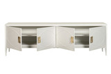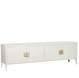 Дизайнерская ТВ-тумба в стиле ар-деко. Бежевый матовый фасад украшен объемным дугообразным декором и широкими рельефными ручками золотого цвета(матовое золото). Четыре распашные дверцы открывают доступ к вместительным отделениям с полкой и ящика прекрасно подойдут для хранения столового белья, книг или посуды. Тонкие ножки придают конструкции легкость и изящество. На просторной столешнице можно установить телевизор практически любой диагонали, оборудование для домашнего кинотеатра или аудиосистему. Эксклюзивная ТВ-тумба станет гармоничным дополнением интерьера спальни или гостиной. На нашем сайте представлены комод арт.98BP-GD01KOMD-BEG, консоль арт.98BP-GD01KONS-BEG для изысканной меблировки вашего дома в едином стиле.