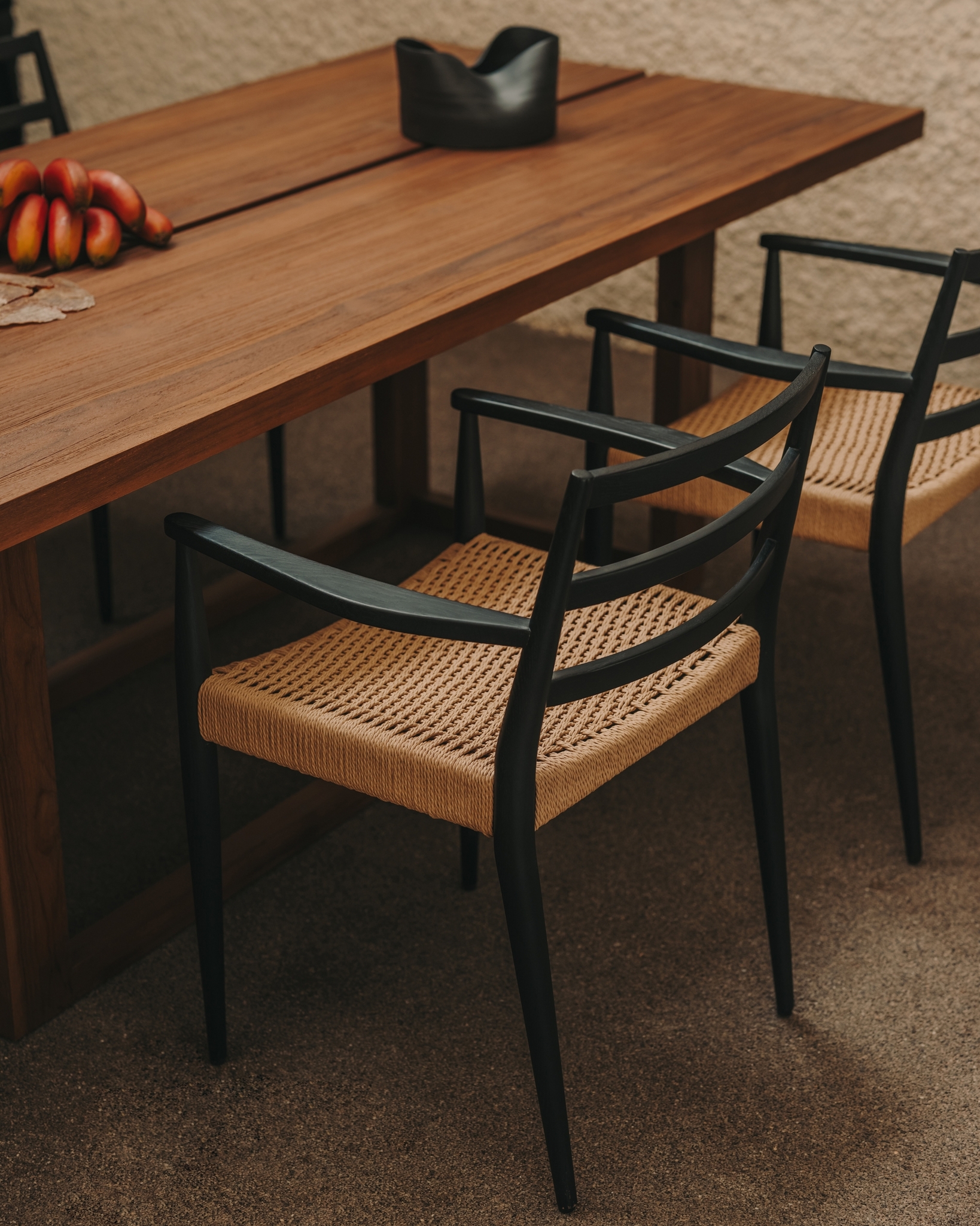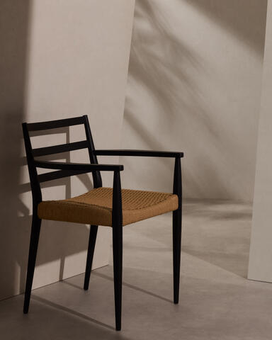 Analy Стул из массива дуба с черной отделкой и сиденьем из веревки
