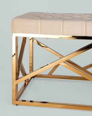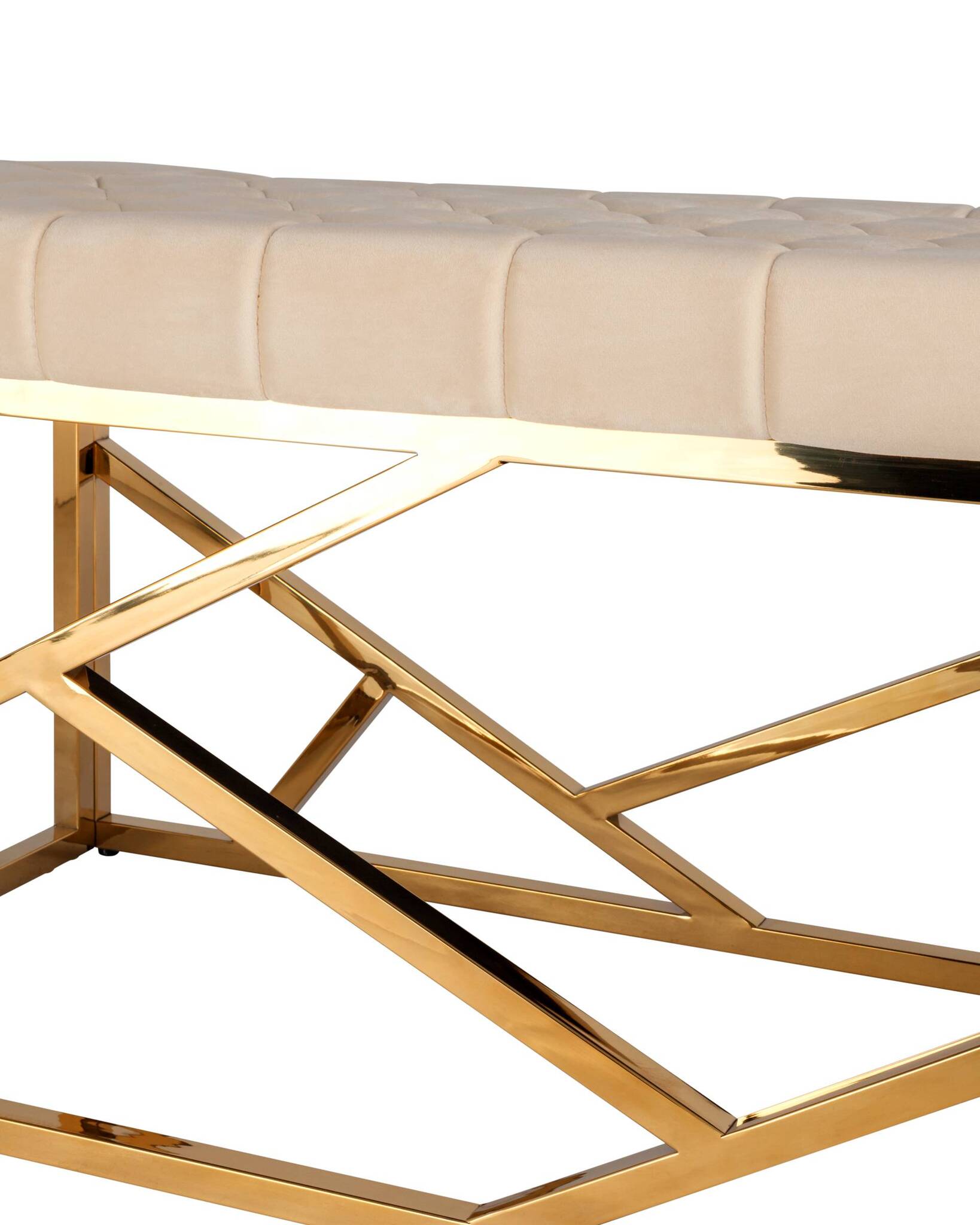 Банкетка-скамейка АРТ ДЕКО сталь золото, нержавеющая сталь, обивка сиденья велюр бежевый