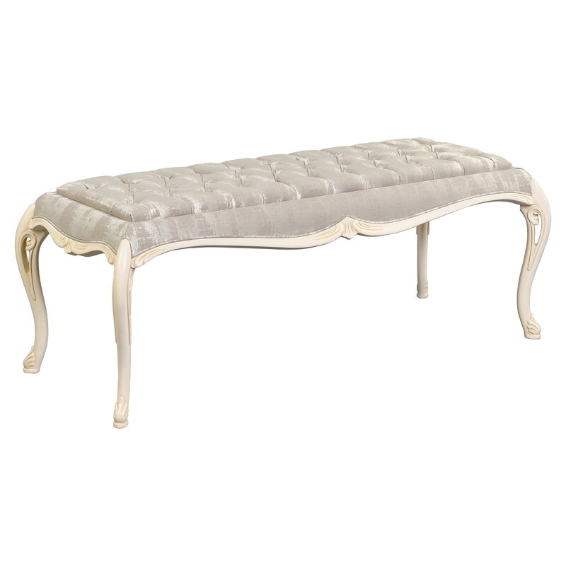 Изысканным сочетанием стиля и современных технологий в Вашем доме станет эксклюзивная мебель от итальянской компании GIORGIOCASA. Банкетка из массива бука на изогнутых ножках, являющаяся частью этой коллекции, выгодно подчеркнет роскошь созданного вами интерьера. Сиденье декорировано стежкой капитоне.