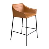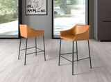 Табурет с современным дизайном с сиденьем и спинкой, обитый коричневой кожзаменитой кожи. Его матовые черные ножки из нержавеющей стали с авангардным, но вневременным стилем сделают его обязательным на вашей кухне или столовой. Этот табурет от Angel Cerdá сочетает в себе уникальный и личный стиль бренда, а также высочайший комфорт и стабильность благодаря высокому качеству обивки и оригинальной структуре ног.
