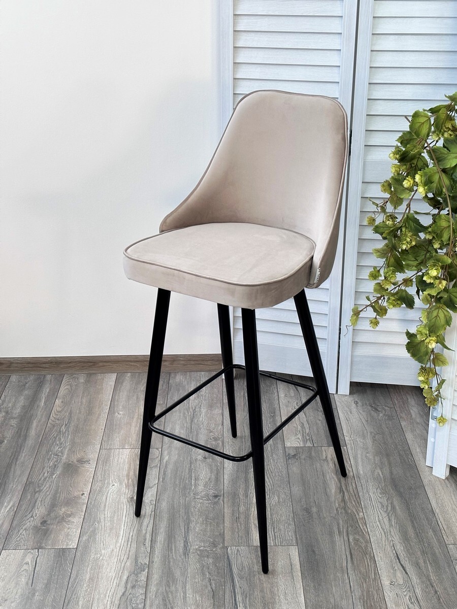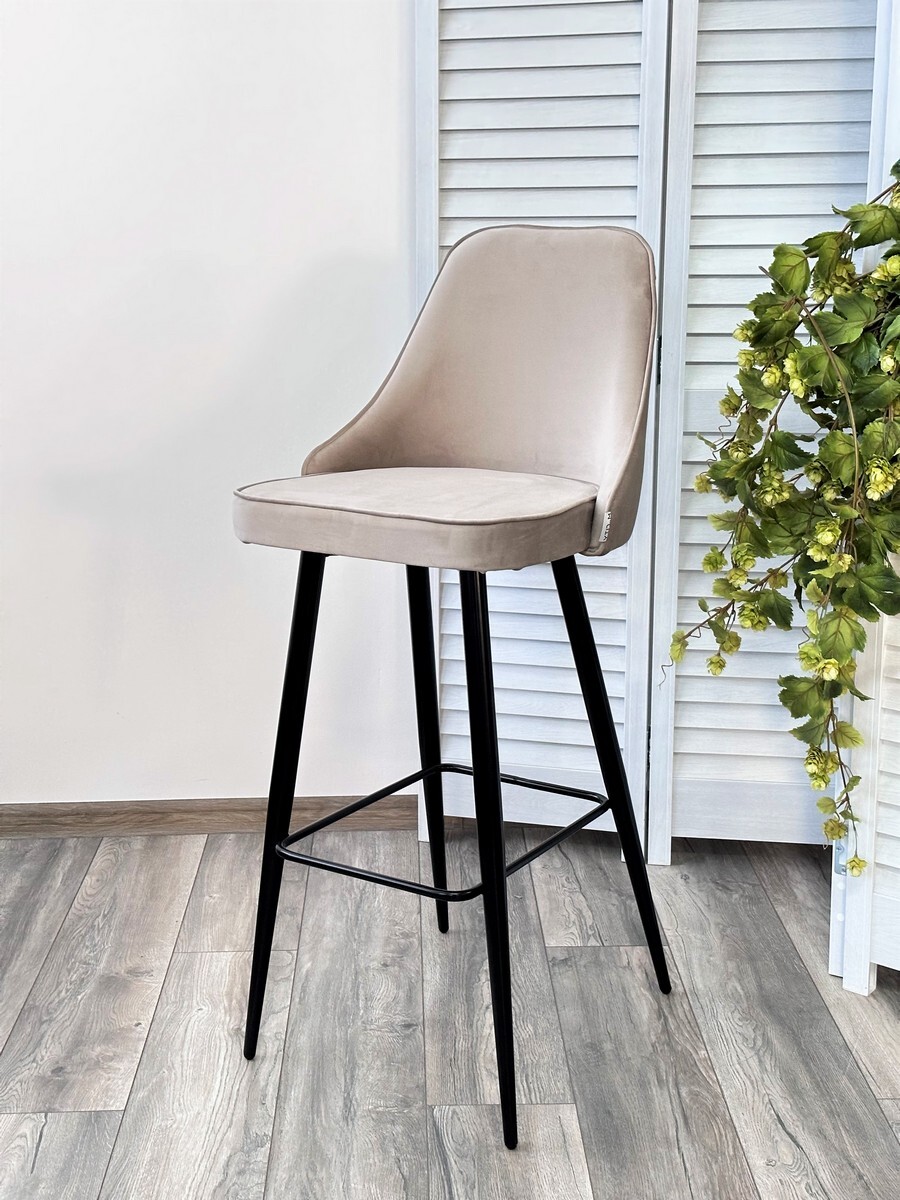 Барный стул NEPAL-BAR БЕЖЕВЫЙ #5, велюр/ черный каркас (H=78cm) М-City