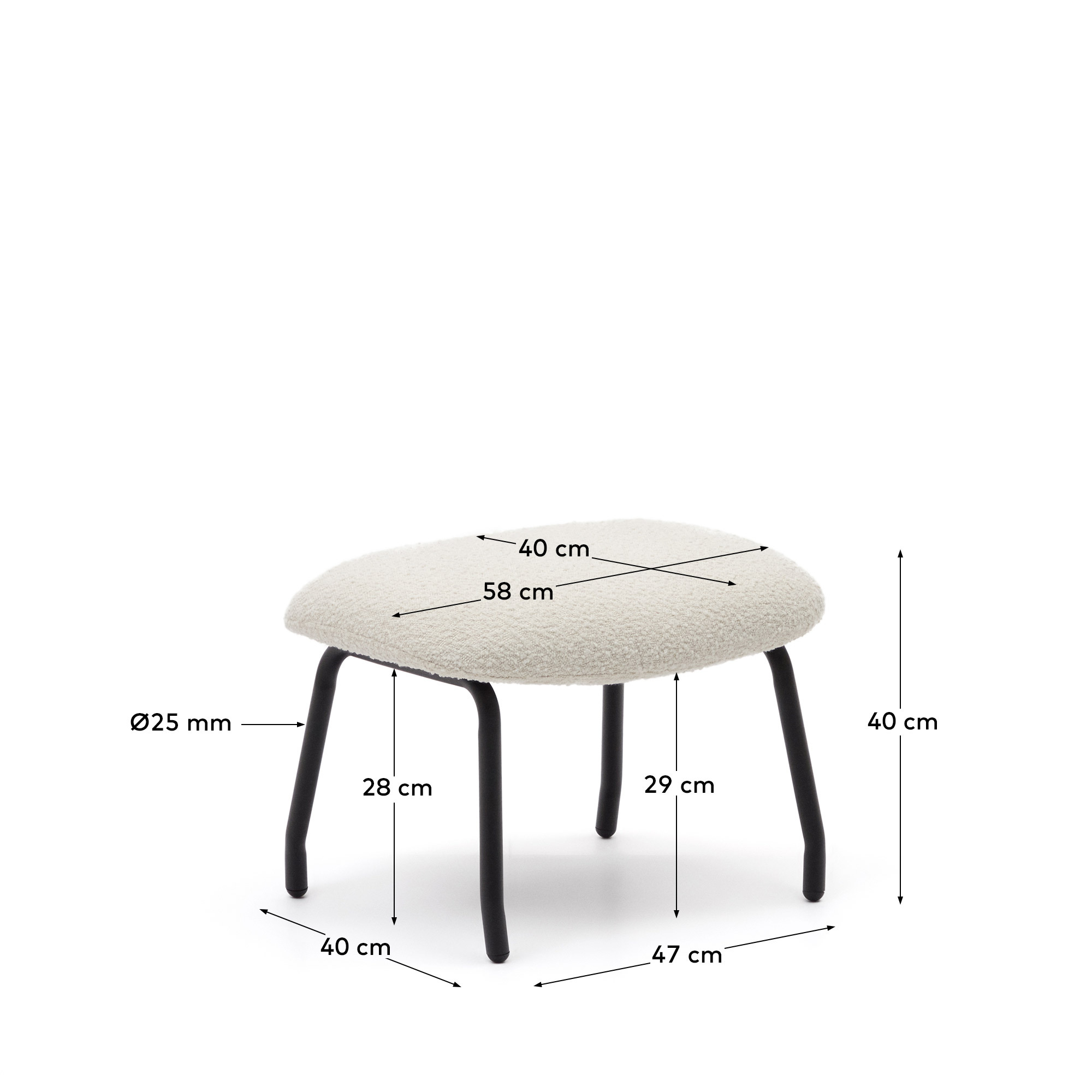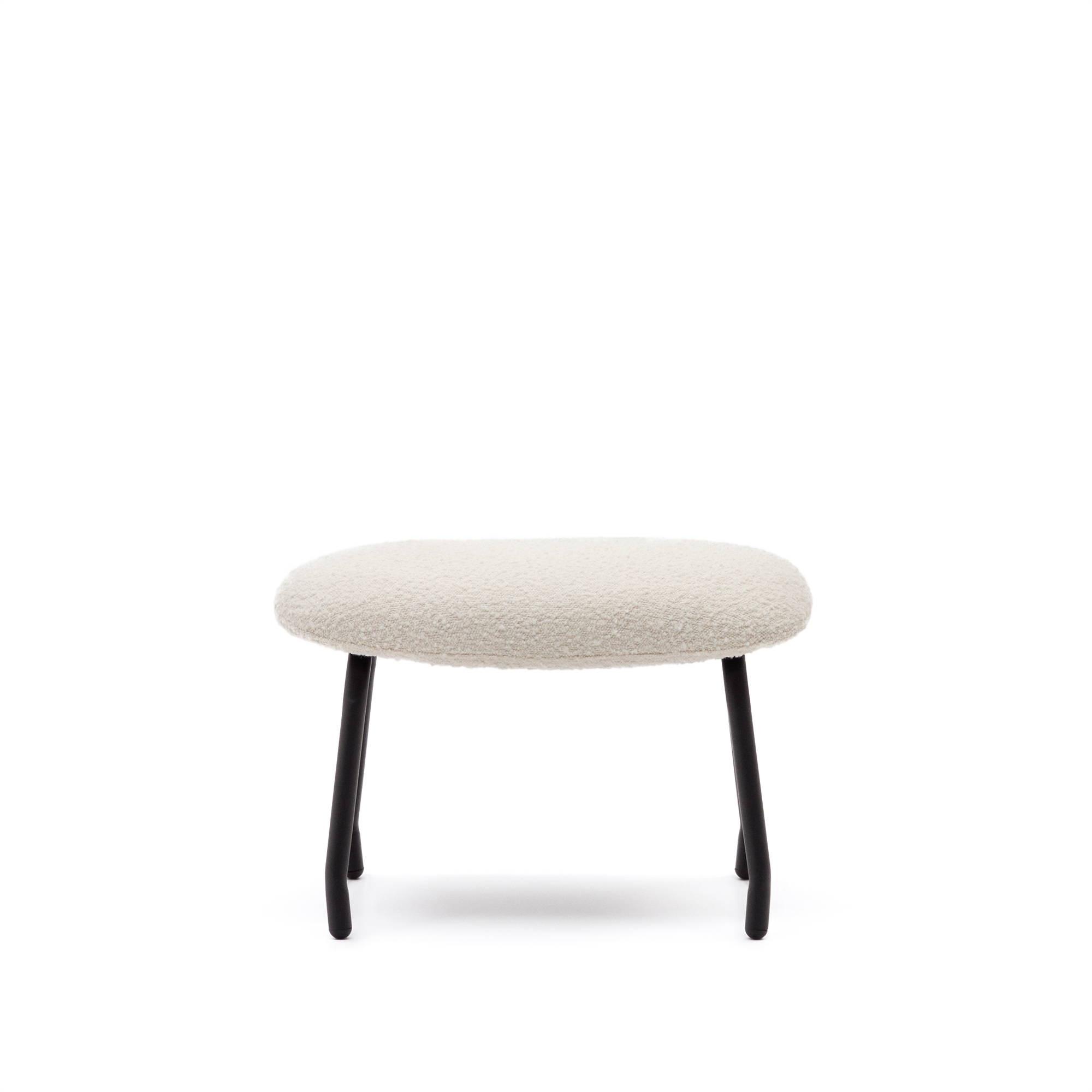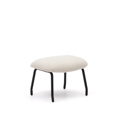 Belina Пуф для ног из белой ткани букле и стали с черной отделкой