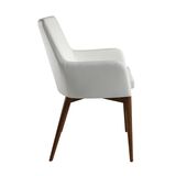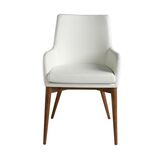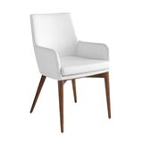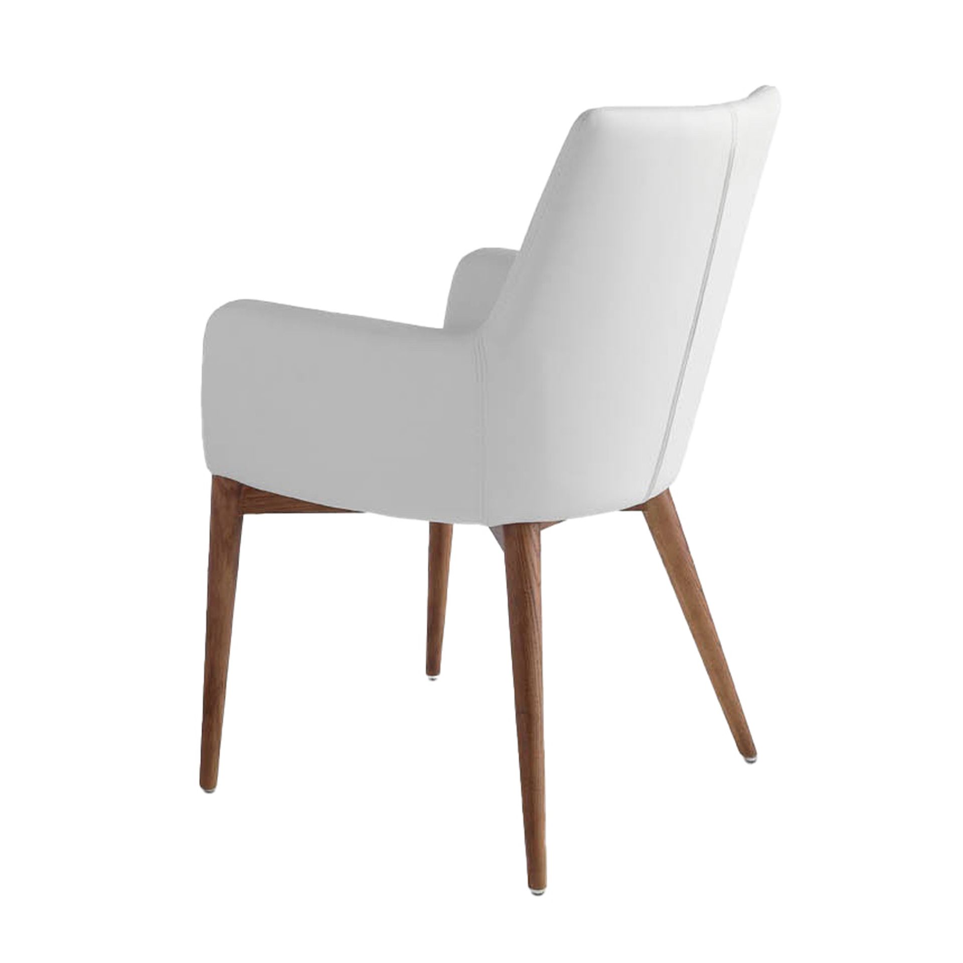 Кресло современного дизайна с подлокотниками, сиденьем и спинкой, обитыми белой искусственной кожей. Его деревянные ножки цвета ореха, авангардный и в то же время неподвластный времени стиль сделают его незаменимым предметом на вашей кухне или в столовой. Это кресло от Angel Cerdá сочетает в себе уникальный и индивидуальный стиль бренда с максимальным комфортом и устойчивостью благодаря высокому качеству обивки и оригинальной конструкции ножек.