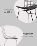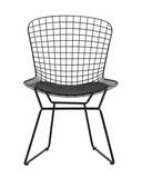 Стул обеденный Bertoia металлический черный с черной подушкой из экокожи