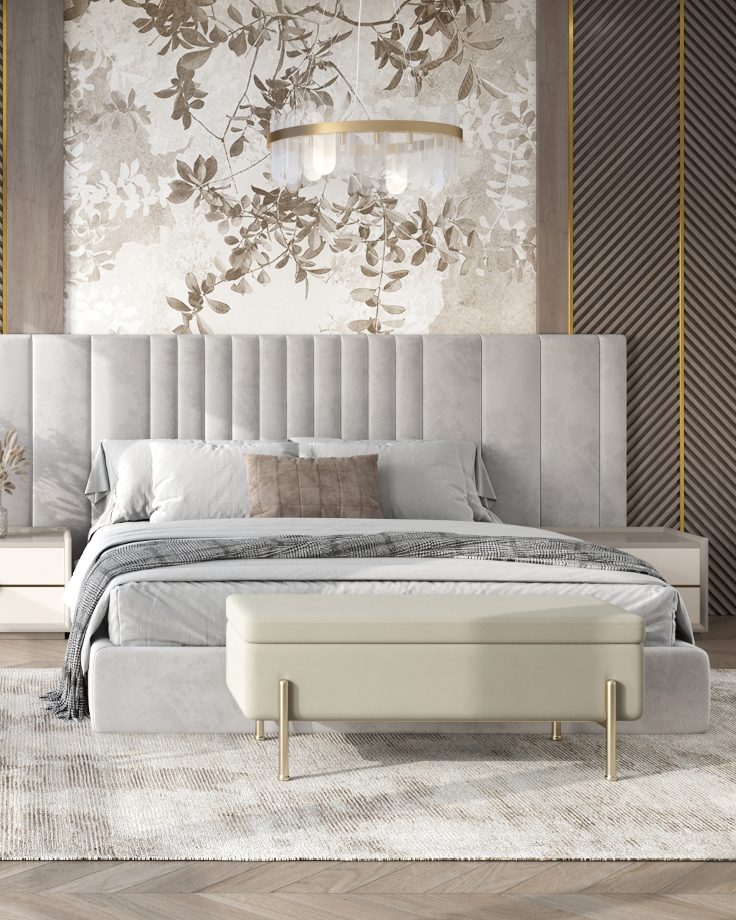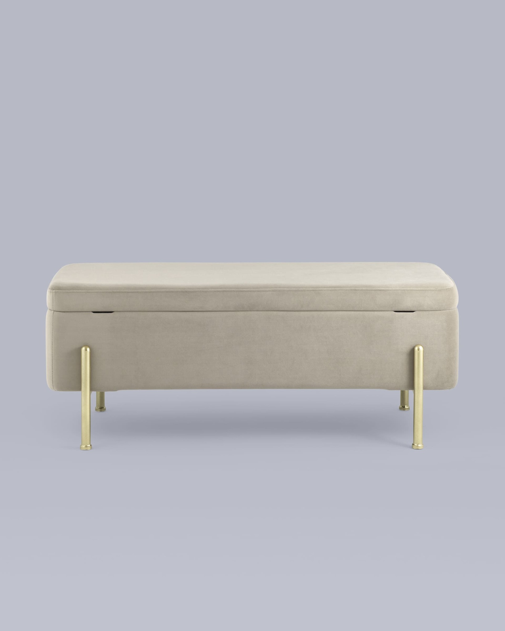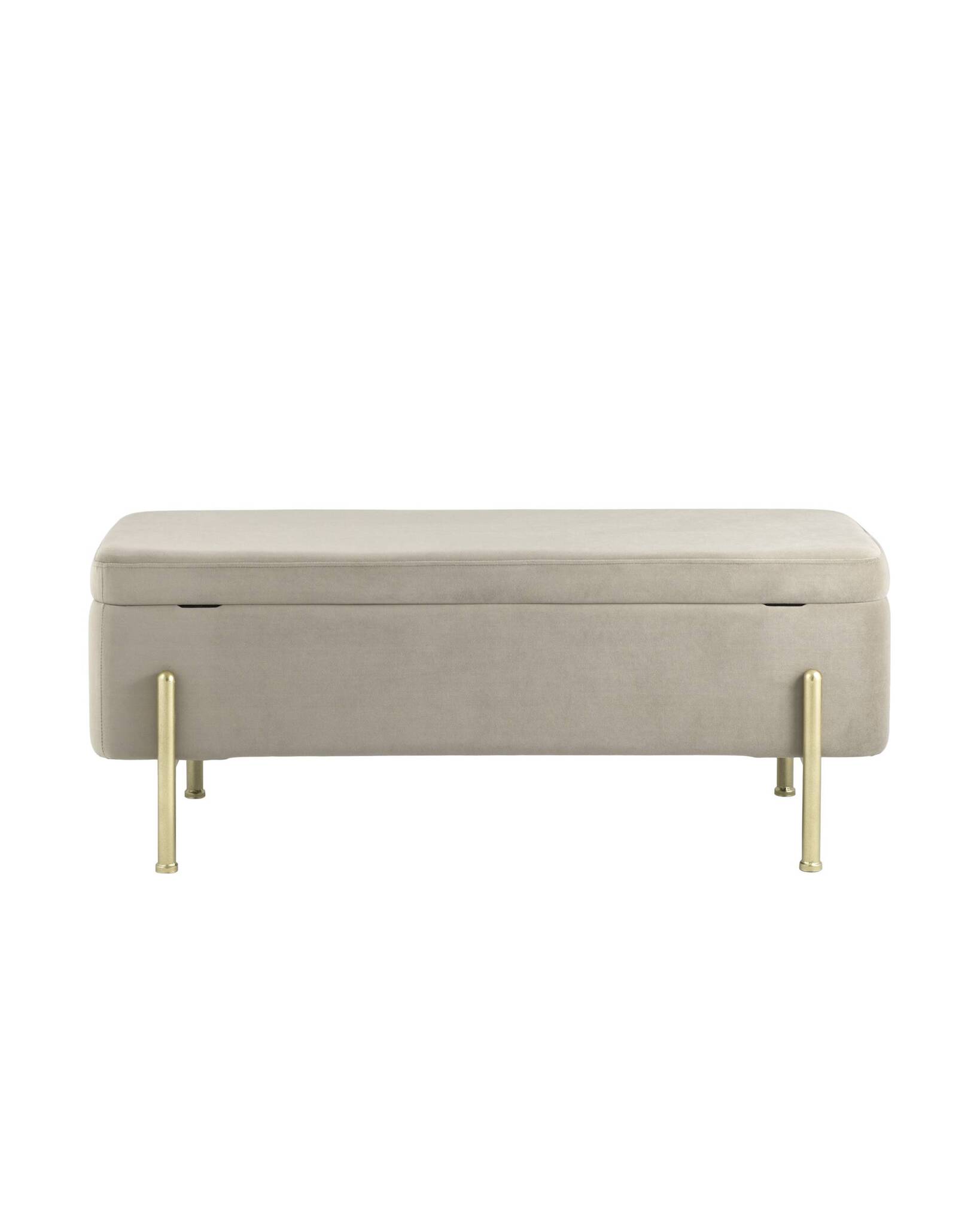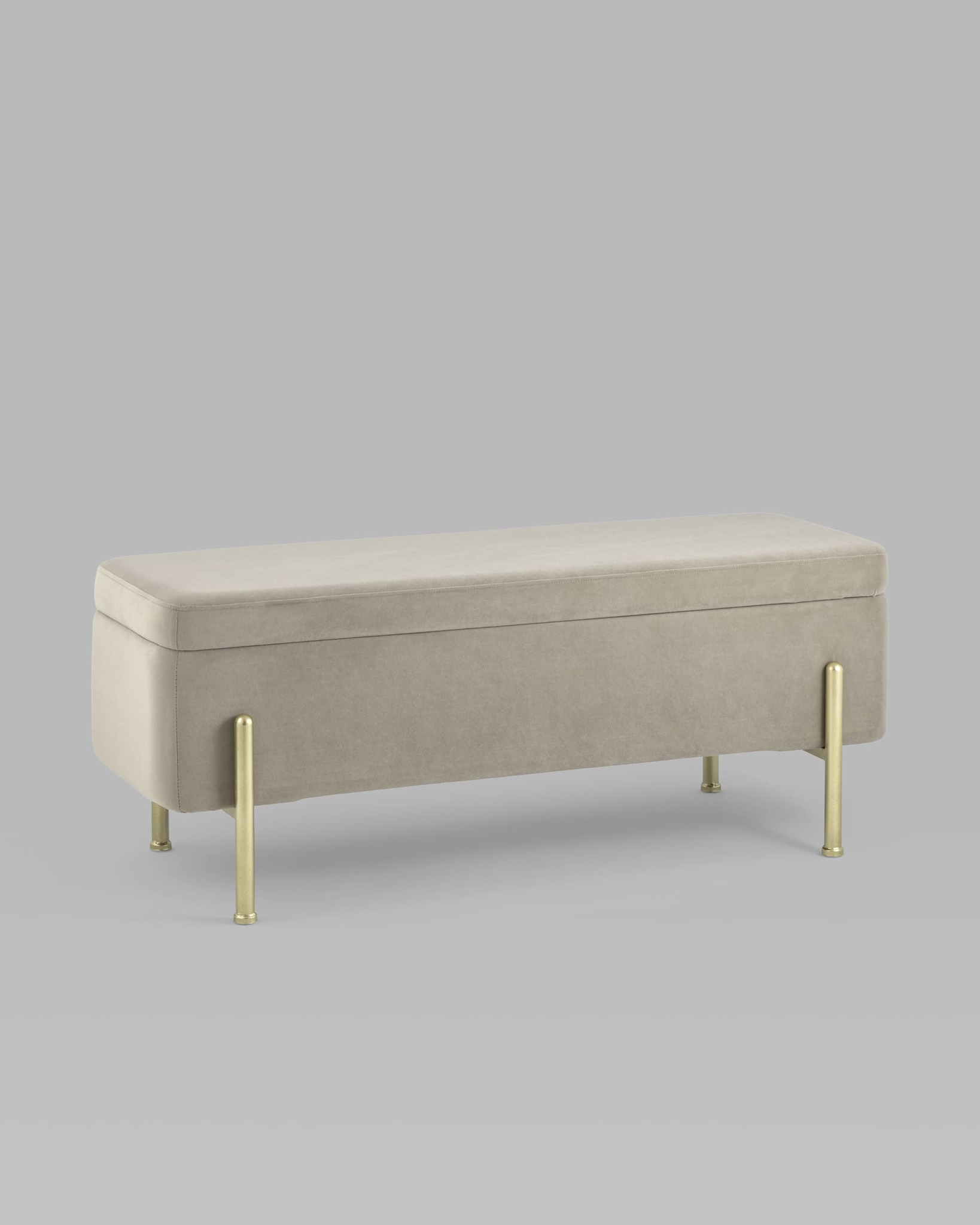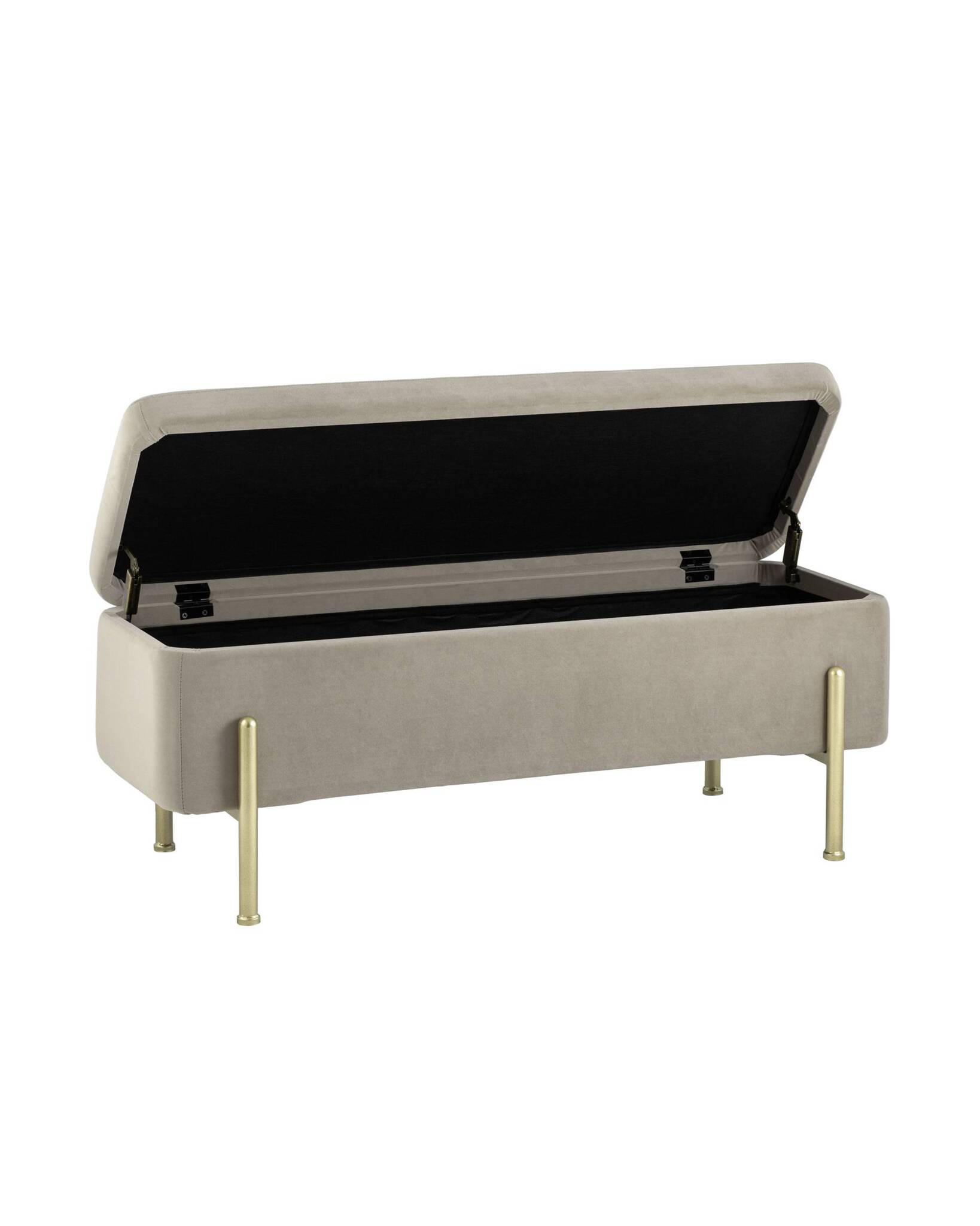 Банкетка Болейн с ящиком велюр бежевый ножки из металла цвет золото