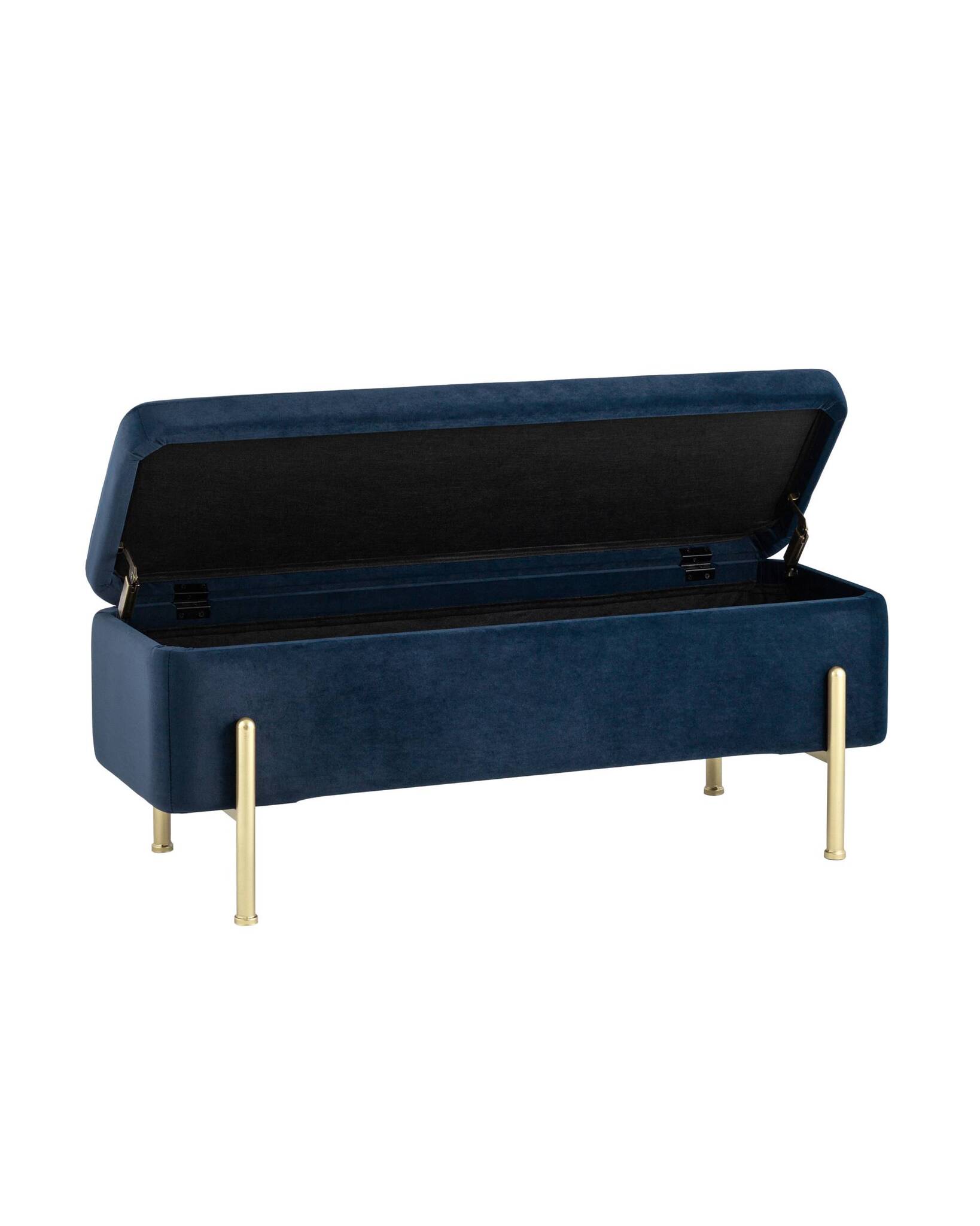 Банкетка Болейн с ящиком велюр синий ножки из металла цвет золото