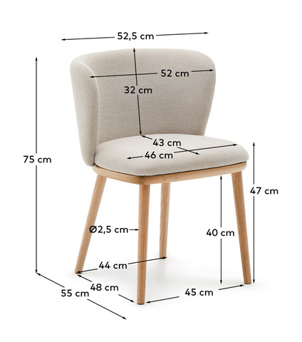 Ciselia Стул из бежевой синели и натурального массива ясеня