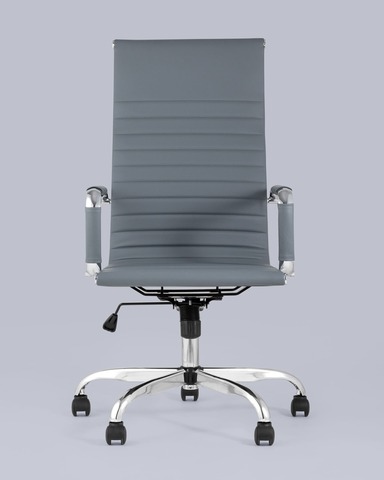 Компьютерное кресло TopChairs City офисное серый, газлифт, механизм качания, сиденье, спинка, чехлы на подлокотниках экокожа, крестовина и подлокотники хром