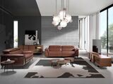 2-местный диван, обитый воловьей кожей со структурой из натурального соснового дерева, с независимыми шарнирно-сочлененными подголовниками и двумя электрическими механизмами релаксации. Стальные ножки, окрашенные сплошной черной эпоксидной краской