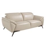 2-местный диван с обивкой из воловьей кожи с независимыми шарнирными подголовниками. Внутренняя структура из натуральной сосны и ножки из массивной черной нержавеющей стали. Кожа - Taupe M5652.