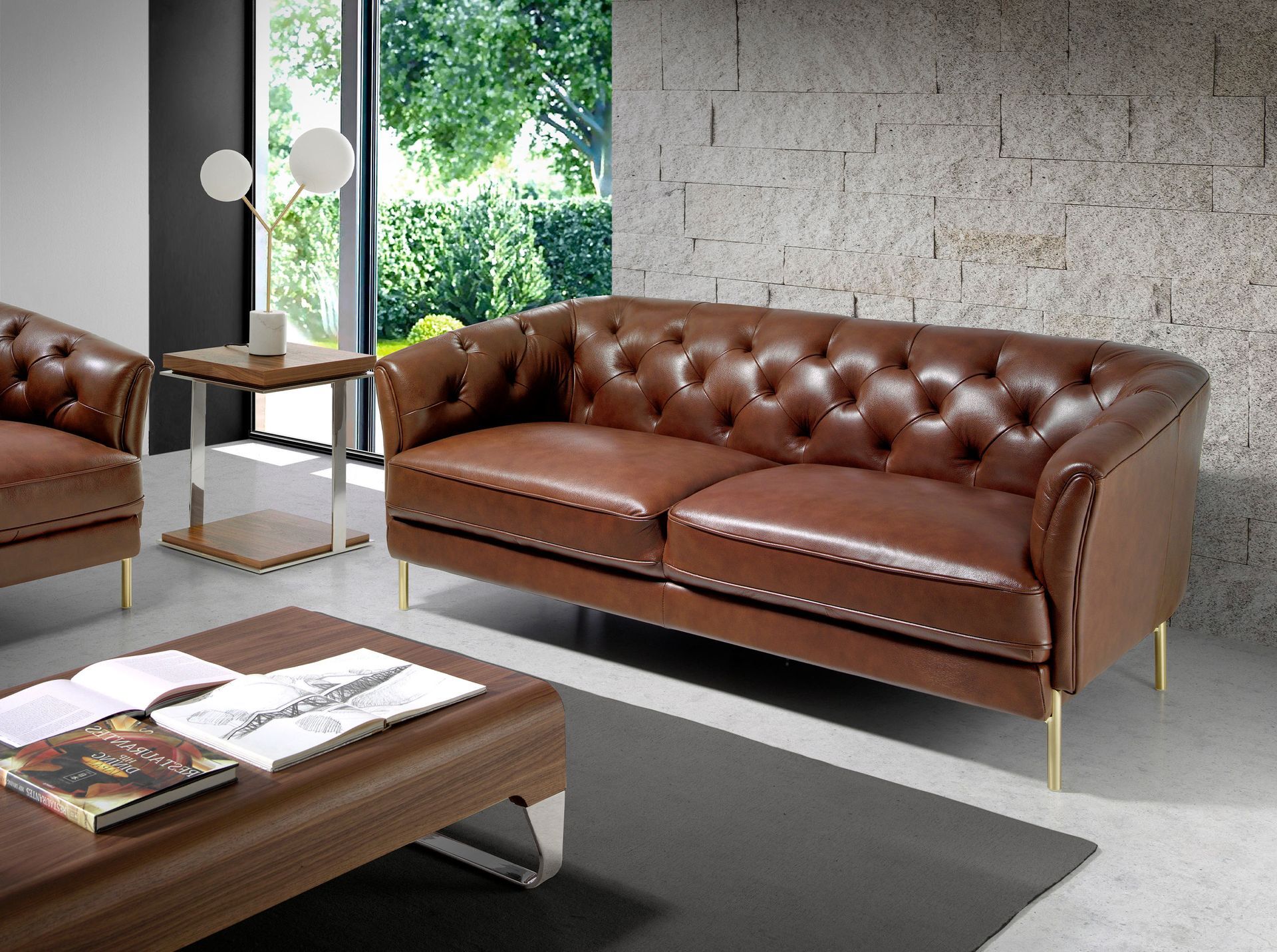 Диван 6140/KF106-M1595 от фабрики Angel Cerda – элегантный капитоне на натуральной коже шоколадного цвета. Диван 6140/KF106-M1595 изысканный и роскошный. Его аристократичный вид создан декоративной стяжкой капитоне и кожей высшего качества цвета шоколада. Изящество и шик читаются в позолоченных тонких ножках. Поэтому с таким диваном ваше пространство поднимет свой статус! Диван каркасный, изготовлен из сосновой древесины, современного наполнителя и натуральной кожи высокого качества. Наполнитель – вспененный полиуретан плотностью 20 кг/м3. Он обеспечивает дополнительный комфорт, необходимый для отдыха. Кожа плотная, толщиной 1 мм, с гладкой фактурой. Цвет коньячно-шоколадный. Ножки изготовлены из стали, имеют трубчатую форму, покрыты золотой гальванической краской. Для улучшения устойчивости ножки дополнены наконечниками. Диван представлен в двух вариантах – двухместный и трехместный. Размеры: ширина – 188/223 см, высота – 75/75 см, глубина – 94 см. Вес: 80/110 кг. Сборка не требуется.