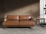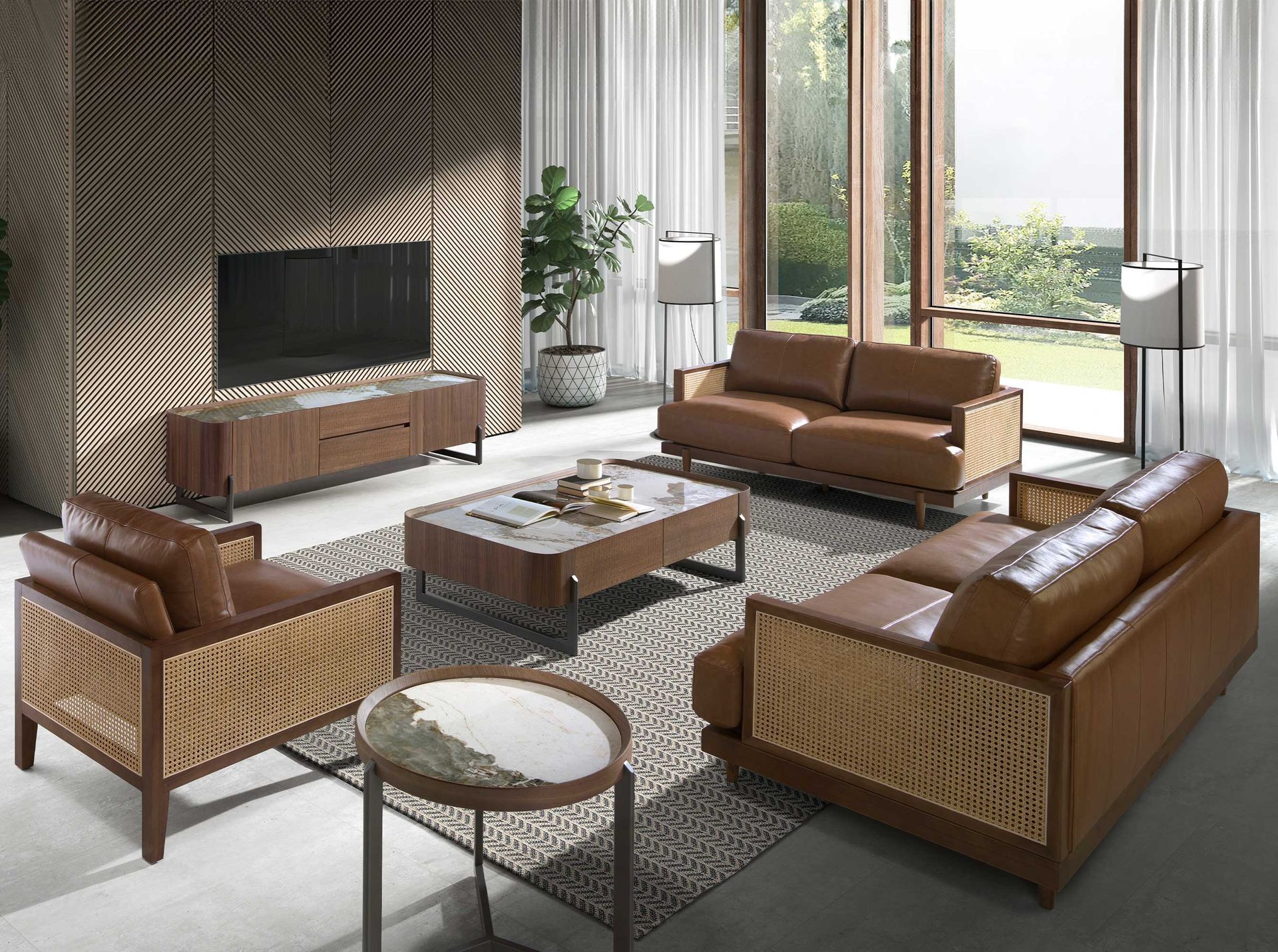3-местный диван современного дизайна с обивкой из коричневой яловой кожи. Благодаря своему стилю и деревянным ножкам орехового цвета этот диван привнесет в свой дом нотку авангарда и элегантности, которую вы ищете. Модный диван, идеально подходящий для вашей зоны отдыха, с оригинальной деталью из ротанга. Кожа - M2731.