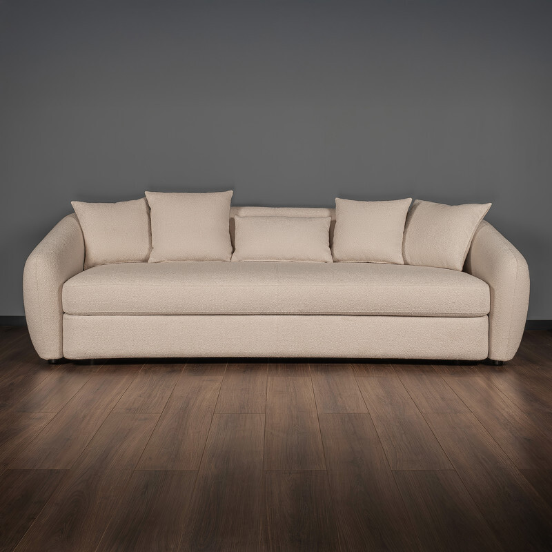Диван-кровать Lunar в современном стиле от испанского бренда MOD Interiors. Имеет выкатной механизм, в его основании установлены колеса, изготовленные из полиуретана . Каркас дивана выполнен из высококачественного МДФ класса Е1 и металлической рамки. Cиденье изготовлено из высокоэластичного ППУ плотностью 35 кг/м3, сиденья дополнительно обернуты высокообъемным материалом "холотек", плотностью 300г/м2. Основание сиденья: металлические пружины змейка. Подушки идут в комплекте и входят в стоимость. Наполнитель подушек спинки: материалом типа "холофайбер" скатанным в шарики, и, дополнительно обернутые "холотеком" плотностью 200 г/м2.