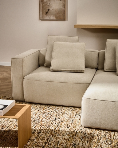 Диван-кровать Marela бежевый шенилл 3-местный с кушеткой справа 236 см
