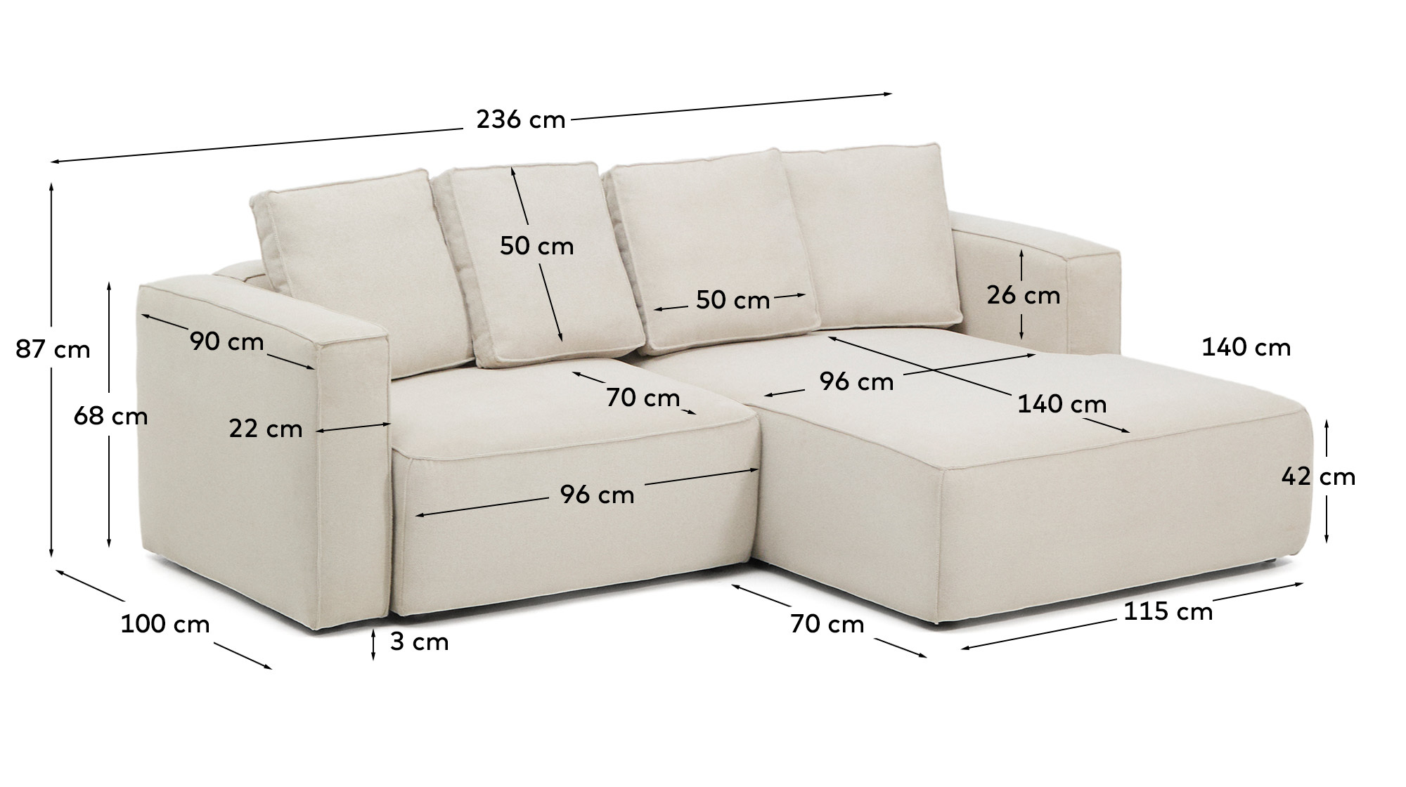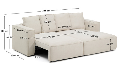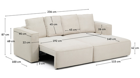Этот диван-кровать отличается прямыми линиями и внушительными размерами. Дизайн подлокотников и спинки предлагает современную и уютную интерпретацию с прочными объемами и сбалансированными пропорциями. Мягкая на ощупь обивка из шенилла с мелкой структурой обработана защитой от пятен, что облегчает чистку и уход. Диван имеет среднюю жесткость благодаря наполнителю из пеноматериала средней и высокой плотности плотностью 28 кг/м³ и системе пружин No-Sag, которая обеспечивает равномерную поддержку по всей поверхности. Подушки спинки имеют съемные чехлы для большей практичности и наполнены силиконовым волокном и перфорированным пеноматериалом, что обеспечивает дополнительную мягкость и гибкость. Функция раскладывания кровати интуитивно понятна и легка благодаря инновационной системе Y-open. Синхронизированный механизм раскладывания превращает диван в просторную кровать размером 140 x 192 см легко и всего за несколько секунд. Каркас изготовлен из сертифицированной древесины FSC Mix Credit, которая сочетает в себе материалы из сертифицированных FSC лесов и контролируемой древесины, что гарантирует ответственное происхождение. Этот диван-кровать произведён в Европе, что означает локальное производство и снижение выбросов CO₂ для снижения воздействия на окружающую среду. Ткань от поставщика, сертифицированного по стандарту OEKO-TEX® STANDARD 100, гарантирует экологичность производства.