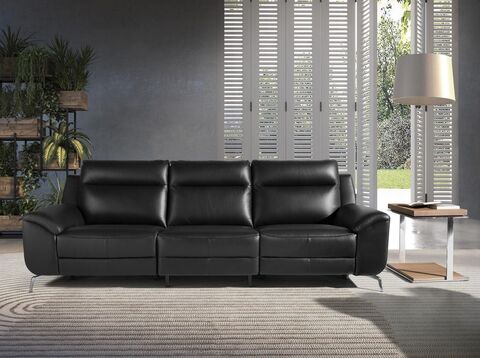 3-местный диван-релакс с современным дизайном, обитый черной воловьей кожей. Благодаря своему стилю и хромированным ножкам из нержавеющей стали этот диван привнесет нотку авангарда и элегантности, которую вы ищете в своем доме. Его 2 электрические системы релаксации обеспечивают дополнительный комфорт, необходимый для отдыха.