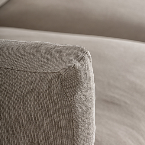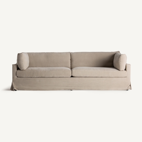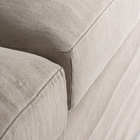 Диван Monheurt в классическом стиле, изготовлен из бежевого льна в сочетании с хлопком и поролоном. Ширина: 280 см, Глубина: 109 см, Высота: 84 см