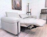 Диван-реклайнер оснащен двумя раздвижными электро-механизмами и регулируемыми подголовниками, позволяющими подобрать наиболее удобное положение.