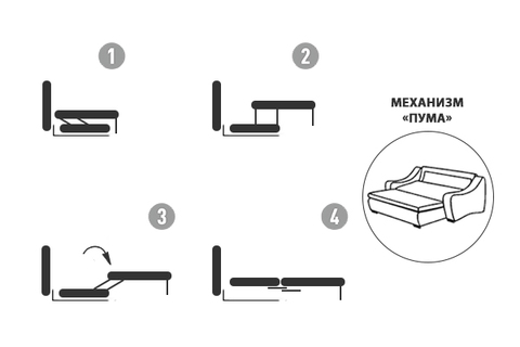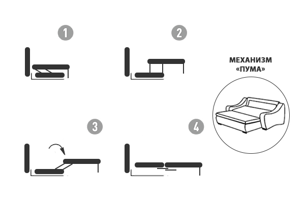Материал: обивка - ткань, каркас и ножки - дерево, механизм - металл
