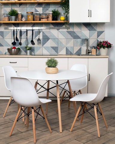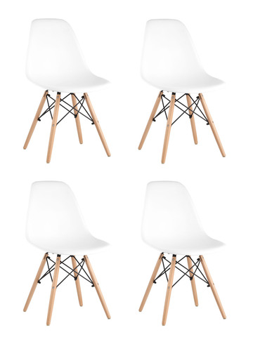 Стул Eames DSW белый пластик каркас из металла ножки натуральный массив бука