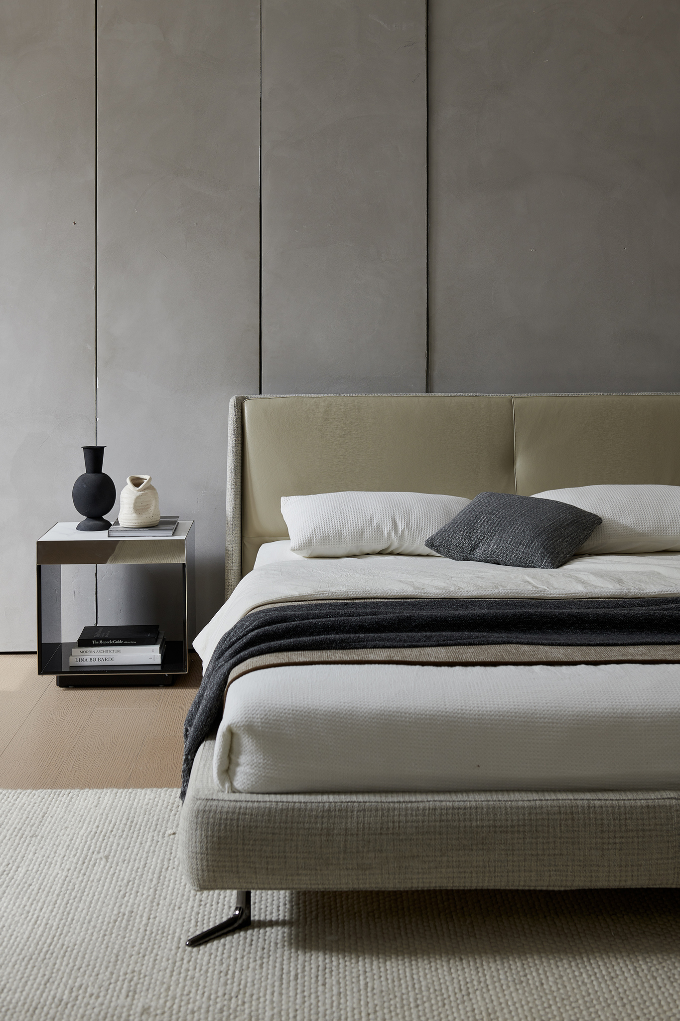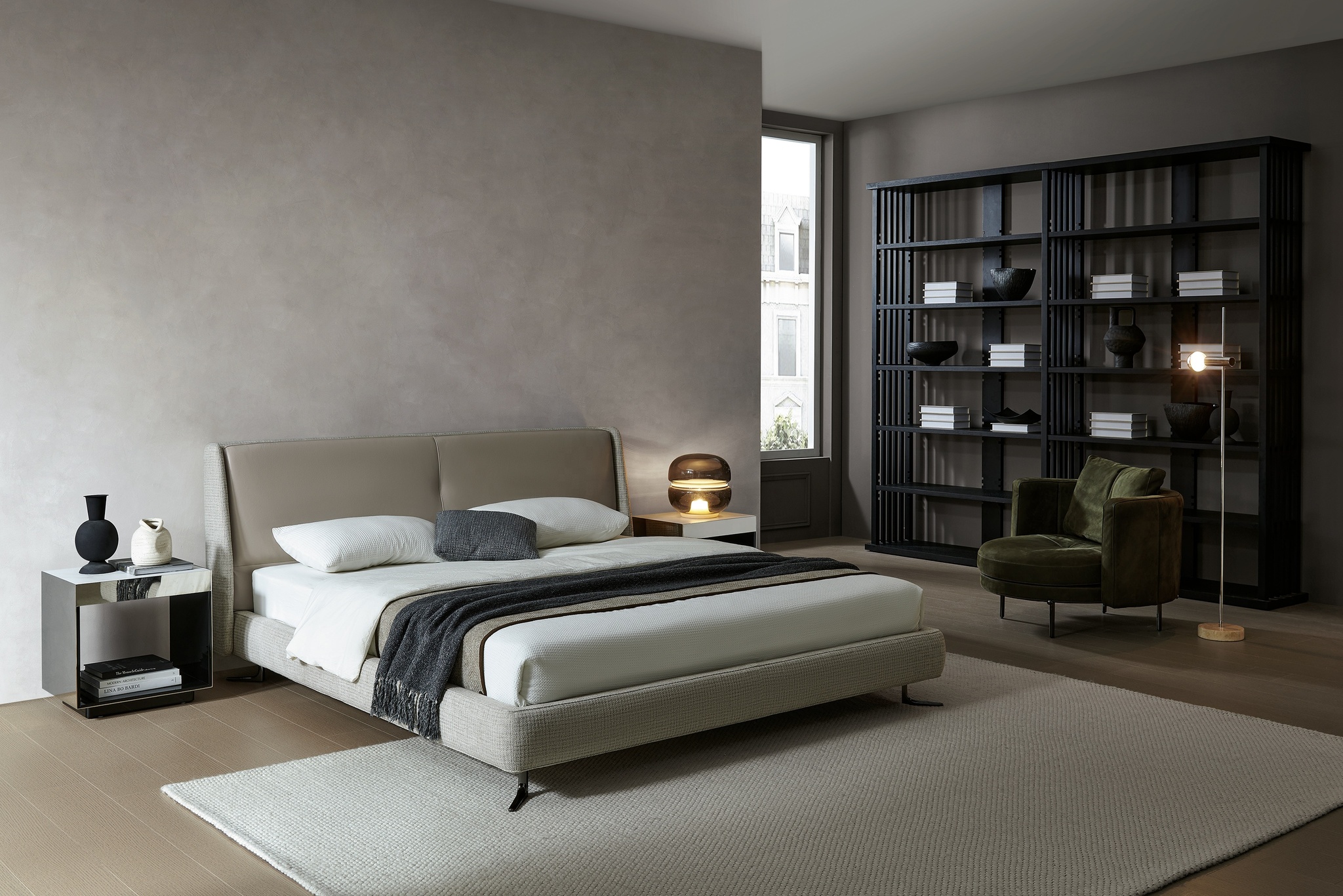 Изысканный пошив, безупречные материалы подчеркивают элегантный силуэт кровати.
