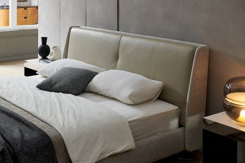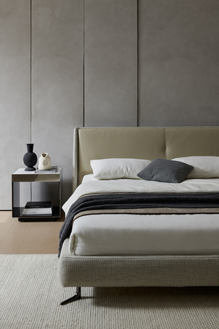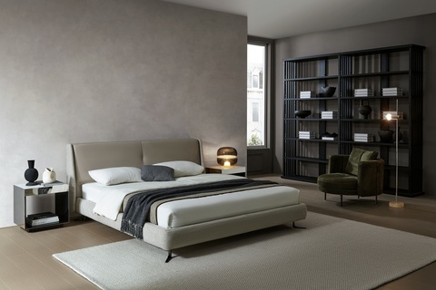 Дизайнерская кровать Eosonno с мягким и комфортным изголовьем дополнена лаконичным основанием на элегантных ножках. Легкий изгиб спинки кровати позволяет удобно устроиться для чтения книги перед сном.