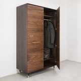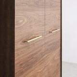 Контраст полуглянца корпуса и естественно-матовой древесной текстуры фасадов делает изделие ярким акцентом интерьера. Материалы: корпус - МДФ, шпон ясеня, полуглянцевый черный лак; фасады - МДФ, шпон американского ореха, полуматовый лак; декоративная фурнитура - латунь. Фурнитура - петли с доводчиками. Возможен выбор других типов отделки, варианты представлены на последнем фото. Конфигурация: 2 двери (перекладина для вешал, полки). Изделие поставляется в собранном виде.