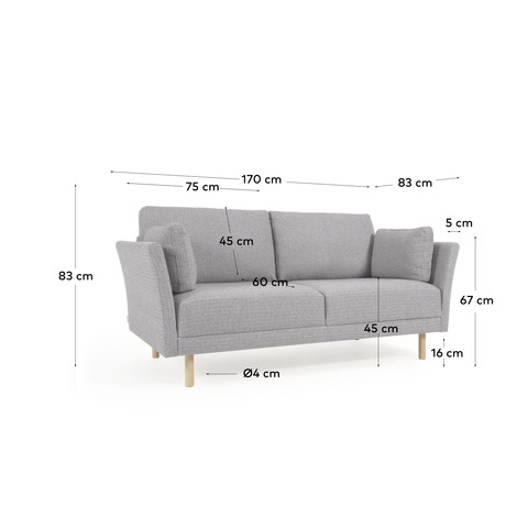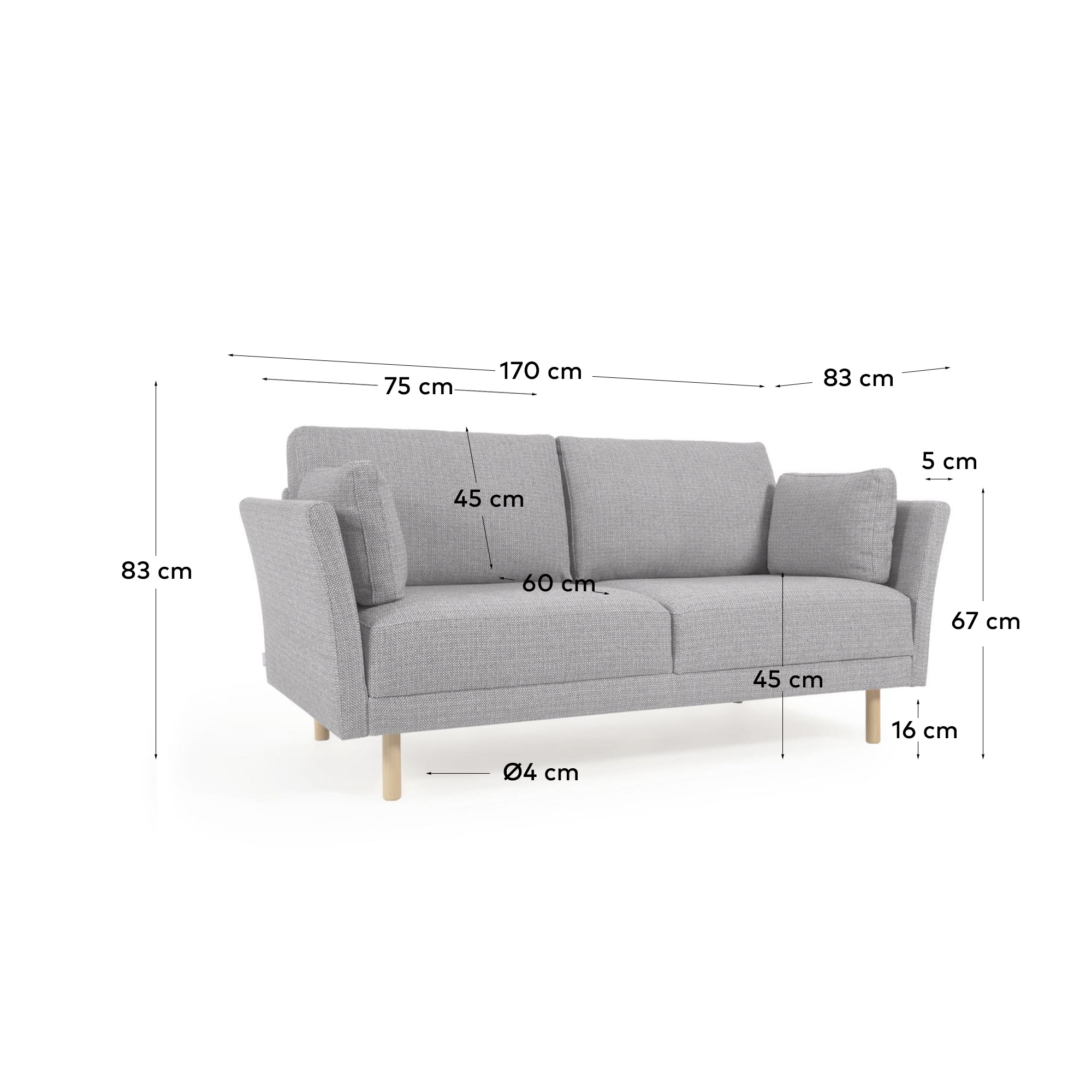 Gilma 2-местный диван светло-серого цвета с ножками в натуральной отделке 170 см.