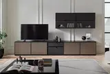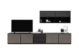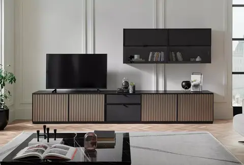 Благодаря сочетанию стекла, черной профильной рамы, эффекта металла на корпусе, черных матовых металлических ручек и кожаных вставок шкаф подчеркивает элегантность и утонченность интерьера.