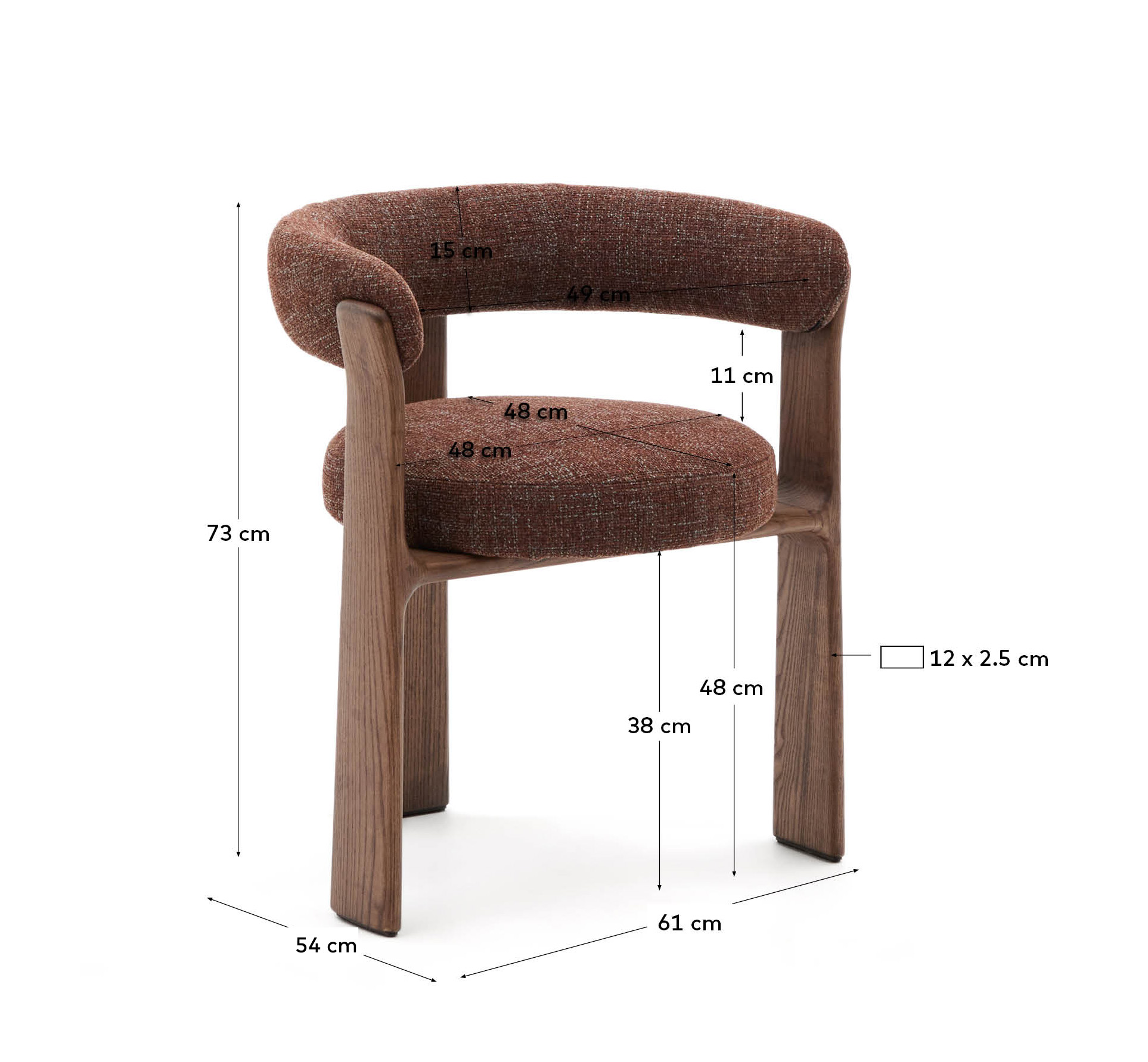 Стул Granite от фабрики La Forma (ex Julia Grup) – эксклюзивный вид из шенилла и массива ясеня. Стул Granite – ваша заявка на создание уникального дизайна со скандинавским акцентом. Дизайн, позаимствованный в Скандинавии из 70-х годов, прекрасно впишется в эко-интерьер. Натуральная древесина здесь показана ярко и натурально. Такая мебель вне времени! Стул состоит из деревянной основы на трех ножках, подушки и дугообразной спинки. Основа изготовлена из массива ясеня в натуральной или ореховой отделке (на ваш выбор). На ножках шириной 12 см установлены защитные накладки с эффектом амортизации. На ножки уложена круглая подушка диаметром 48 см, набитая синтетической пеной средней степени жесткости. Выше на ножках закреплена спинка высотой 15 см. Обивка подушки и спинки из шенилла. Это синтетическая ткань с мягкой фактурой и повышенной прочности. Цвет на ваш выбор – бежевый, коричневый, зеленый. Максимальная нагрузка на стул – 130 кг. Размеры: ширина – 49 см, высота – 73 см, глубина – 57 см. Вес – 9,9 кг. Потребуется минимальная сборка. Инструкция и крепеж включены в комплектацию. В коллекцию Granite также включены кресла с аналогичным дизайном.