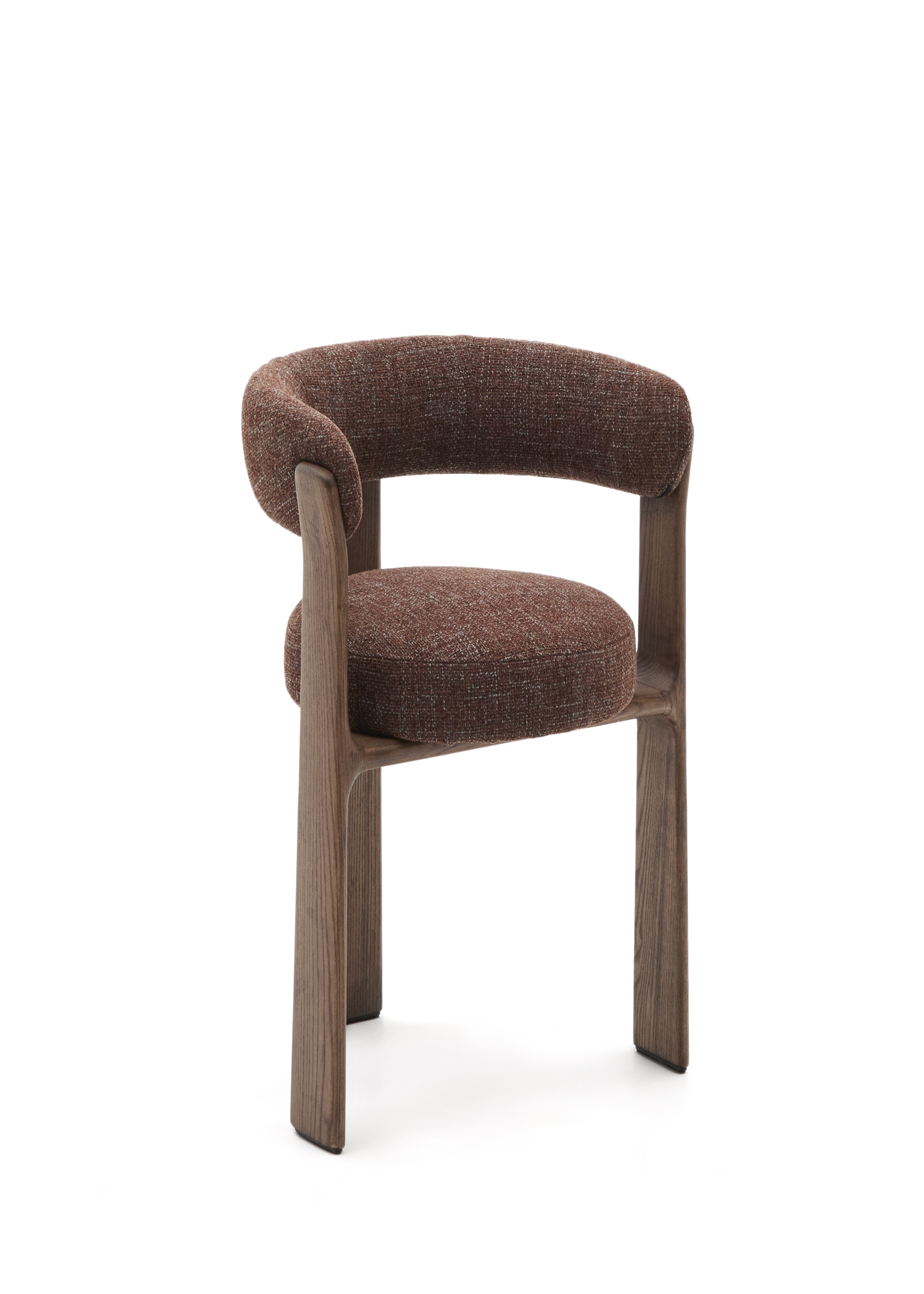 Granite Стул на 3 ножках из коричневого шенилла и массива ясеня в отделке орех